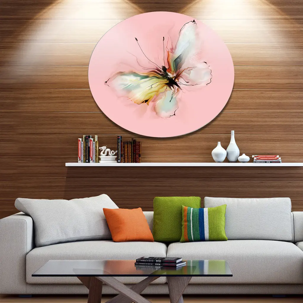 Bring Contemporary Abstraction to your home with this large Circle Metal wall art. This Colorful Butterfly Drawing Metal Artwork makes it the focal point of any room or office. - White Gloss Coating ensures colors are extra vibrant with light reflection.- Aluminum grade Sheet Metal with 1 inch mounting frame on the back giving the illusion that the artwork is floating on the wall..- Mounting Brackets are included along with instructions.- High Quality Digital images are created directly into a glossy aluminum panel producing a stunning and captivating print into the glossy finish of the metal.- Water, Fire and Scratch resistant HD Aluminum panels.- Looks better than any photo paper and guaranteed to last at least 20 years- Easy to clean with a microfiber cloth. Colors are far superior to regular Canvas Art. - Easy to Hang