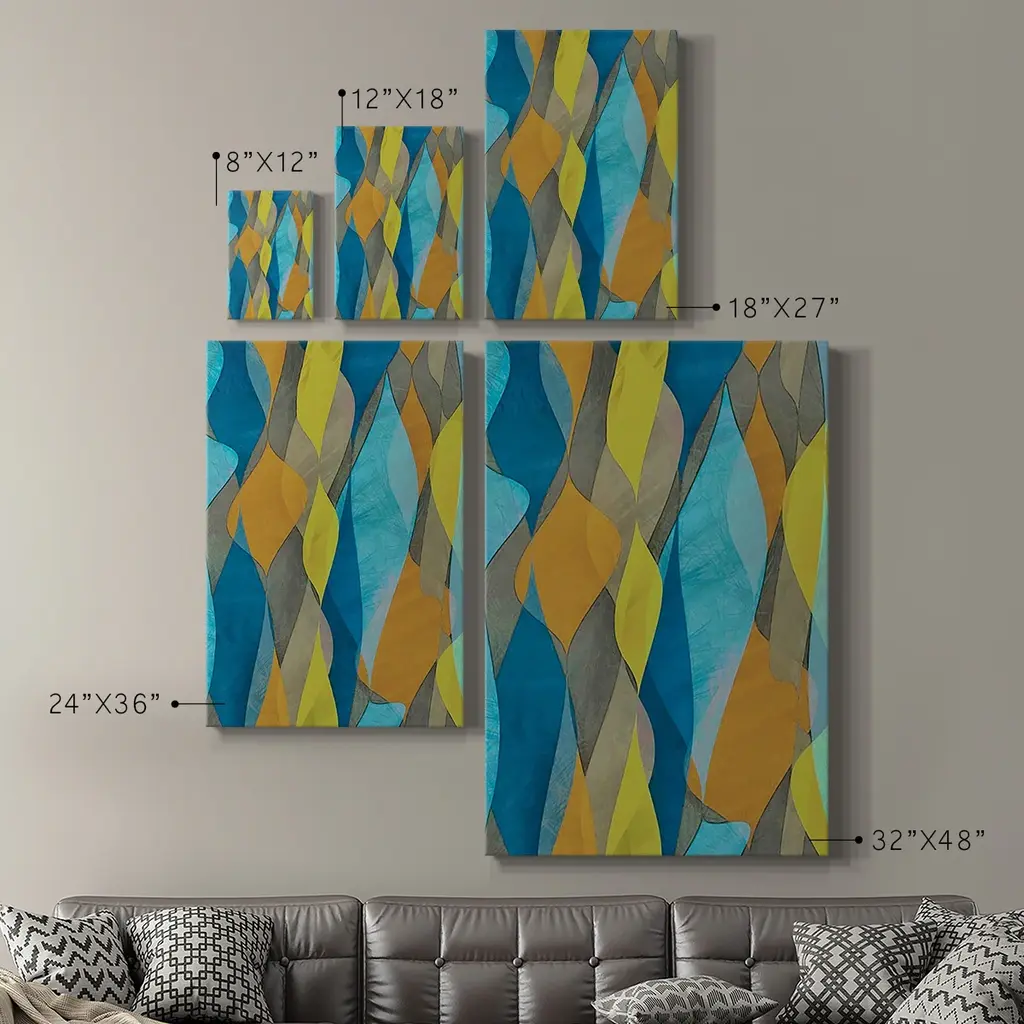Colorful Cascade I Premium Gallery Wrapped Canvas - Ready to Hang A premium hand stretched gallery wrapped canvas print created to last. Featuring a beveled a solid wood stretcher bar, each piece comes ready to hand 6 SIZES AVAILABLE 8''X12'' - Overall Size 12''X18'' - Overall Size 18''X27'' - Overall Size 24''x36'' - Overall Size 32''x48'' - Overall Size 40''x60'' - Overall Size Each piece is made to order. Built to Last Each piece comes ready to hang Solid wood stretcher Fade and Water resistant Made domestically
