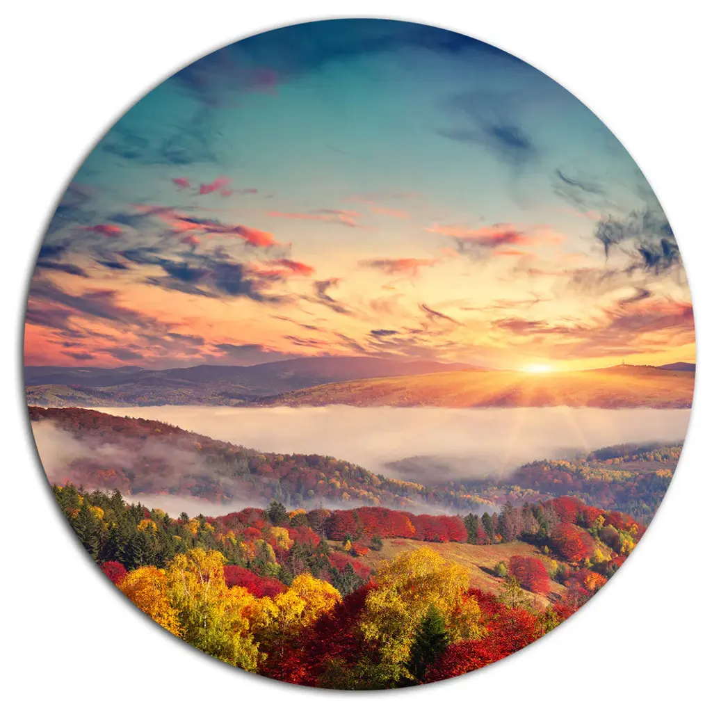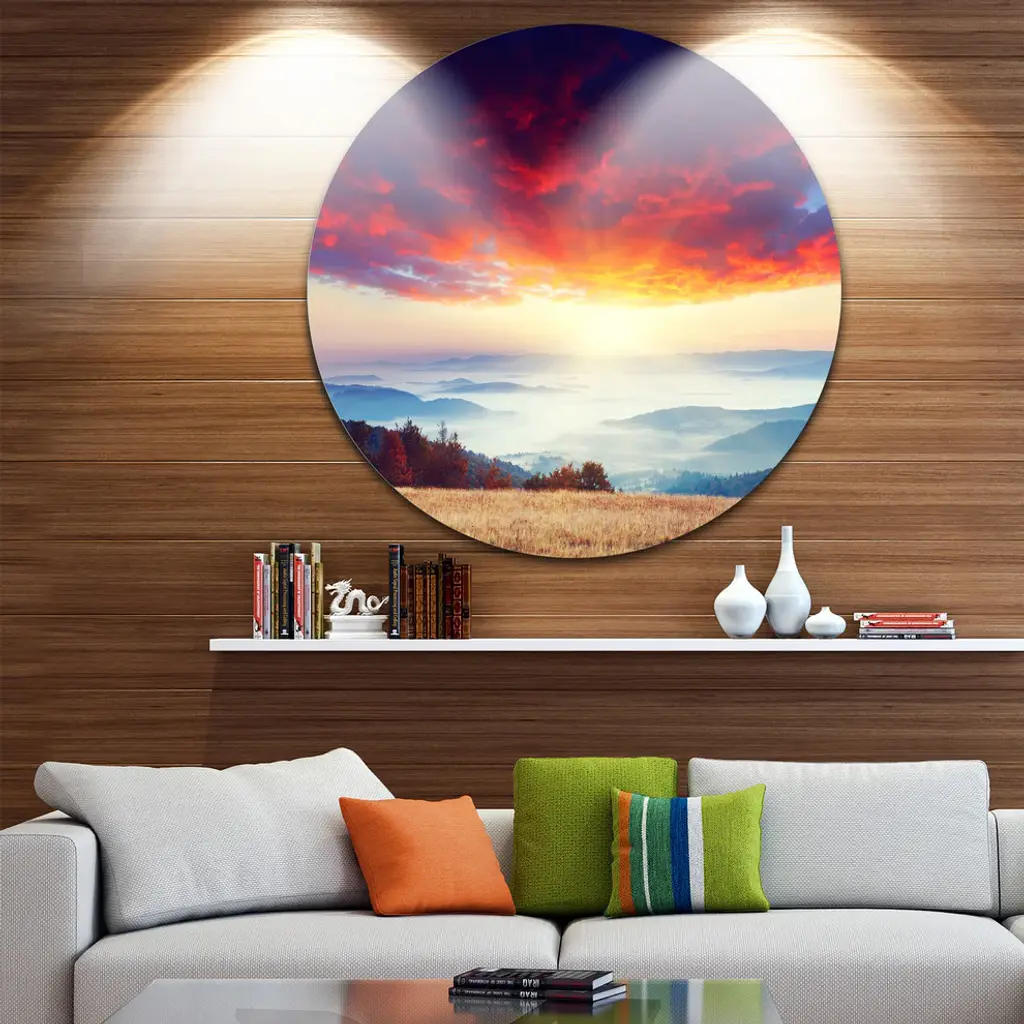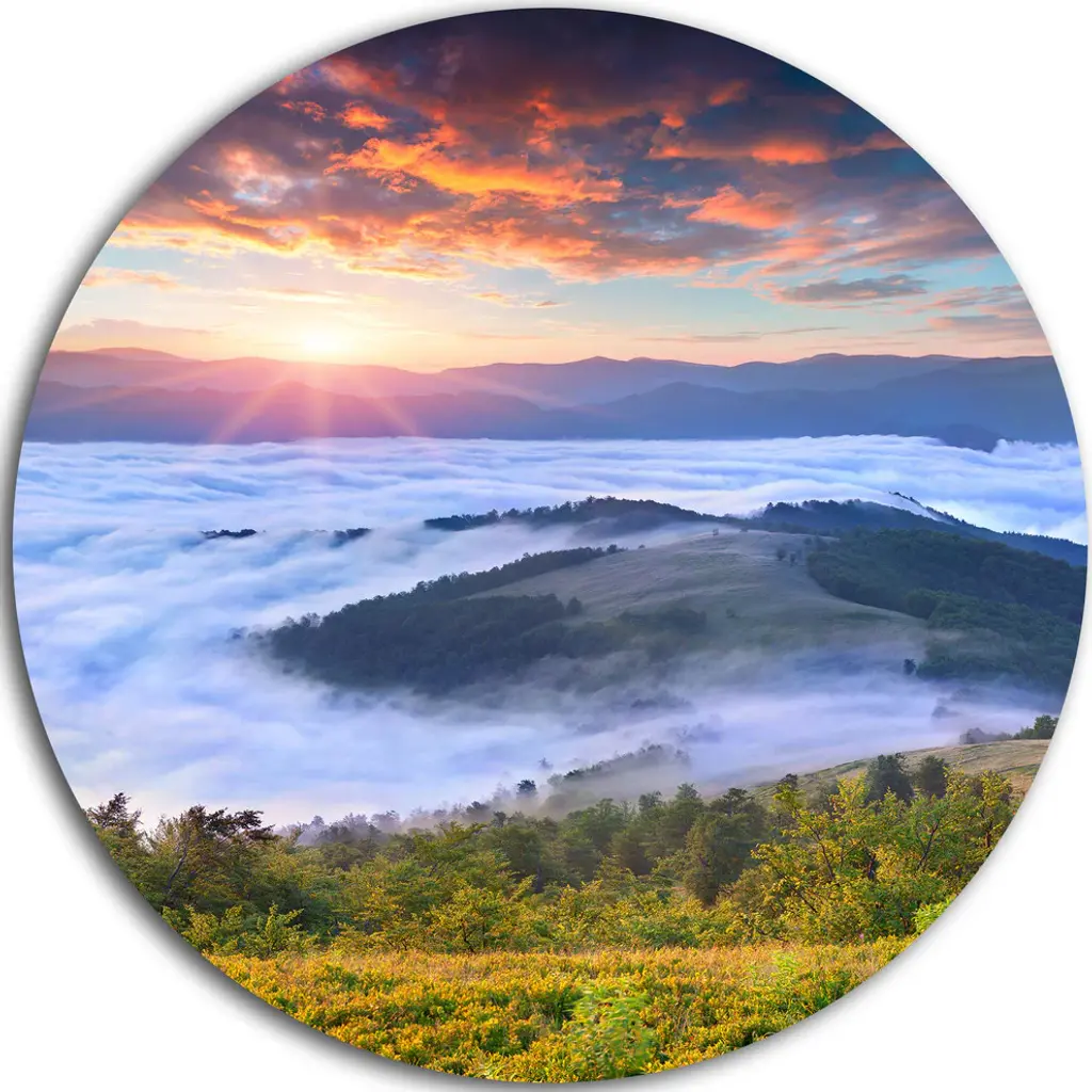 Colorful Clouds And Foggy Hills, Landscape Photo Round Wall Art, 36"