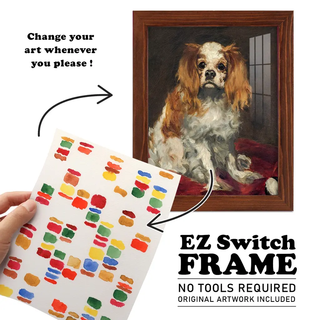 Colorful Code I -EZ SWITCH Framed Print w/glass-Cherry Red A delightful, framed print. Featuring a solid wood frame with real wood glass. This premium print is giclee quality. In addition, every frame features a removable back and table top stand. This allows you to change your art in the future or to just stand the art on a table for a new look. We are sure you'll enjoy our new series of EZ SWITCH Framed Art. Solid Wood Frame Real Glass Removable / Replaceable Art Built in Tabletop Stand Sizes range from 4x6 up to 12x15 - buy just one or pair them up as sets as you see fit.