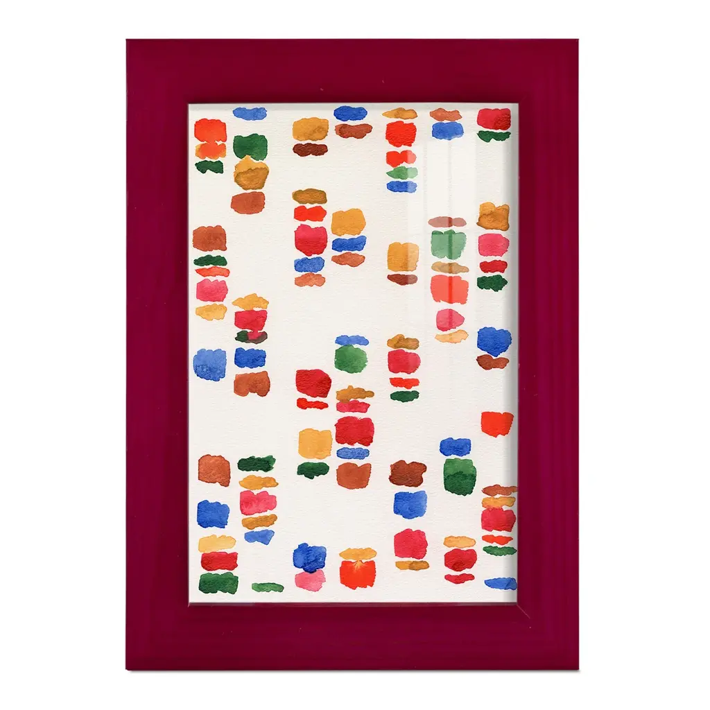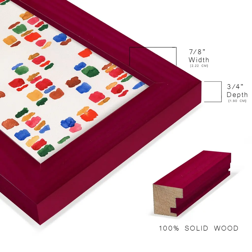 Colorful Code II -EZ SWITCH Framed Print w/glass-Cherry Red A delightful, framed print. Featuring a solid wood frame with real wood glass. This premium print is giclee quality. In addition, every frame features a removable back and table top stand. This allows you to change your art in the future or to just stand the art on a table for a new look. We are sure you'll enjoy our new series of EZ SWITCH Framed Art. Solid Wood Frame Real Glass Removable / Replaceable Art Built in Tabletop Stand Sizes range from 4x6 up to 12x15 - buy just one or pair them up as sets as you see fit.