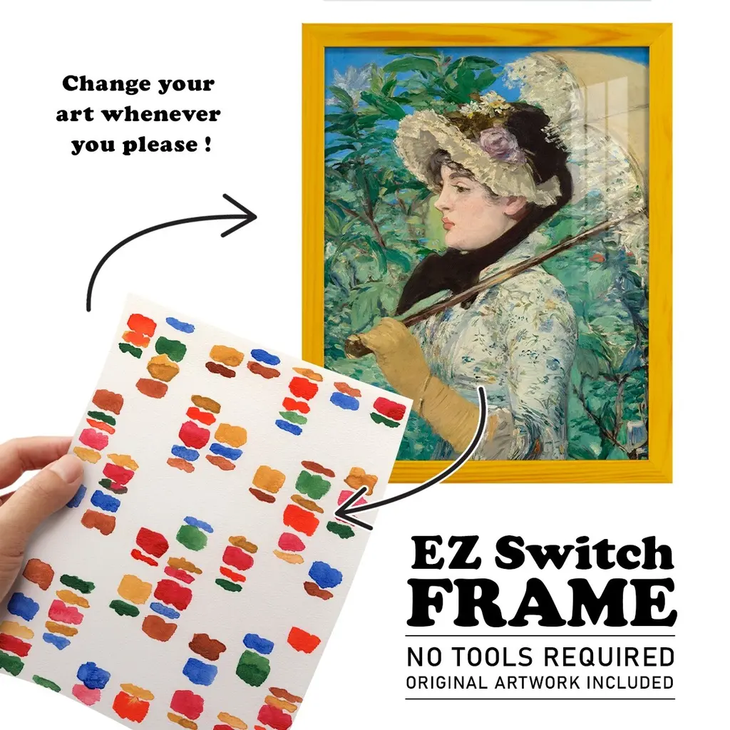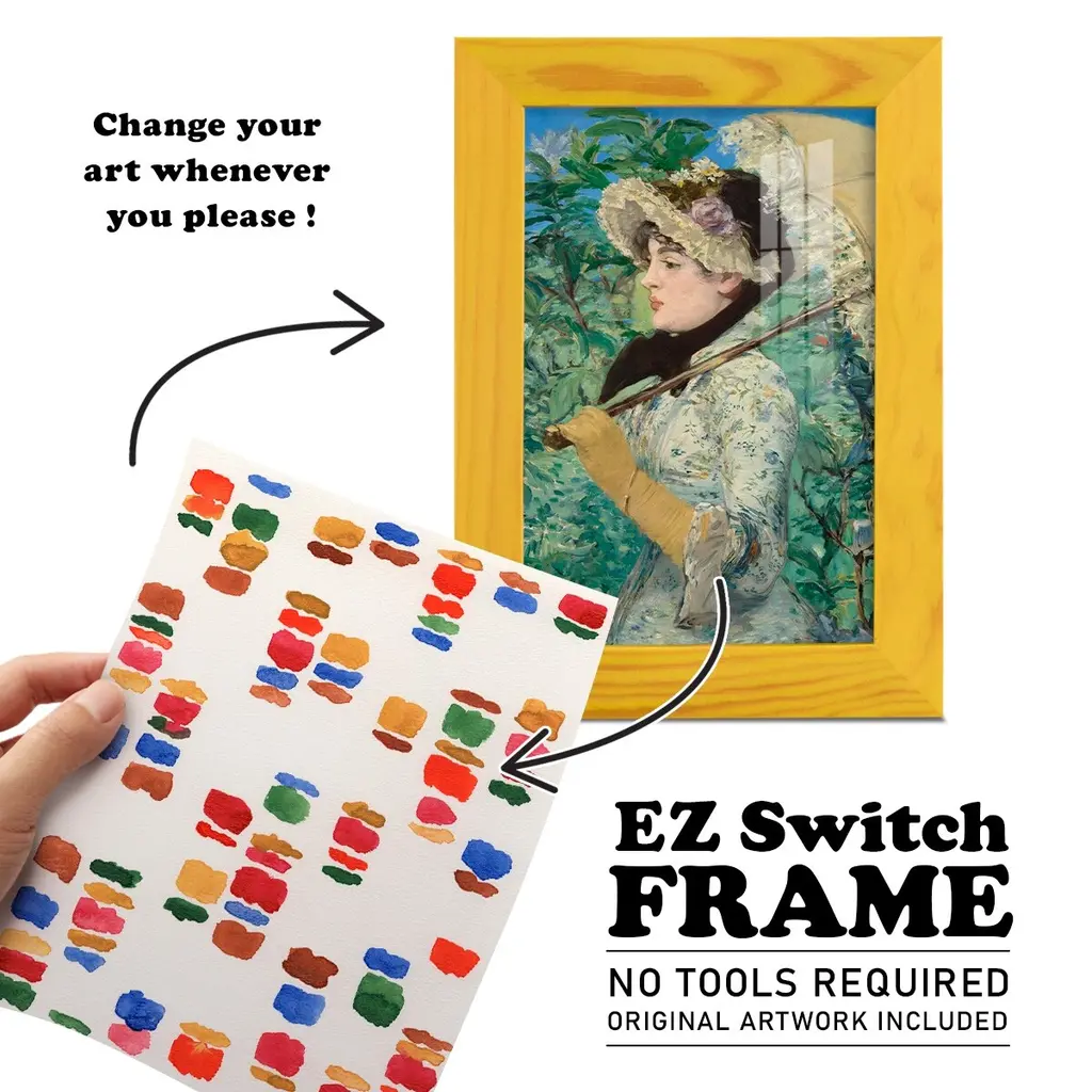 Colorful Code II -EZ SWITCH Framed Print w/glass-Cherry Red A delightful, framed print. Featuring a solid wood frame with real wood glass. This premium print is giclee quality. In addition, every frame features a removable back and table top stand. This allows you to change your art in the future or to just stand the art on a table for a new look. We are sure you'll enjoy our new series of EZ SWITCH Framed Art. Solid Wood Frame Real Glass Removable / Replaceable Art Built in Tabletop Stand Sizes range from 4x6 up to 12x15 - buy just one or pair them up as sets as you see fit.