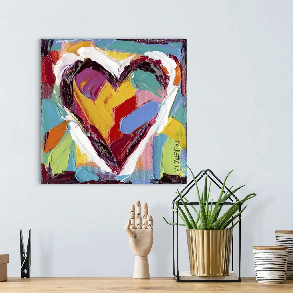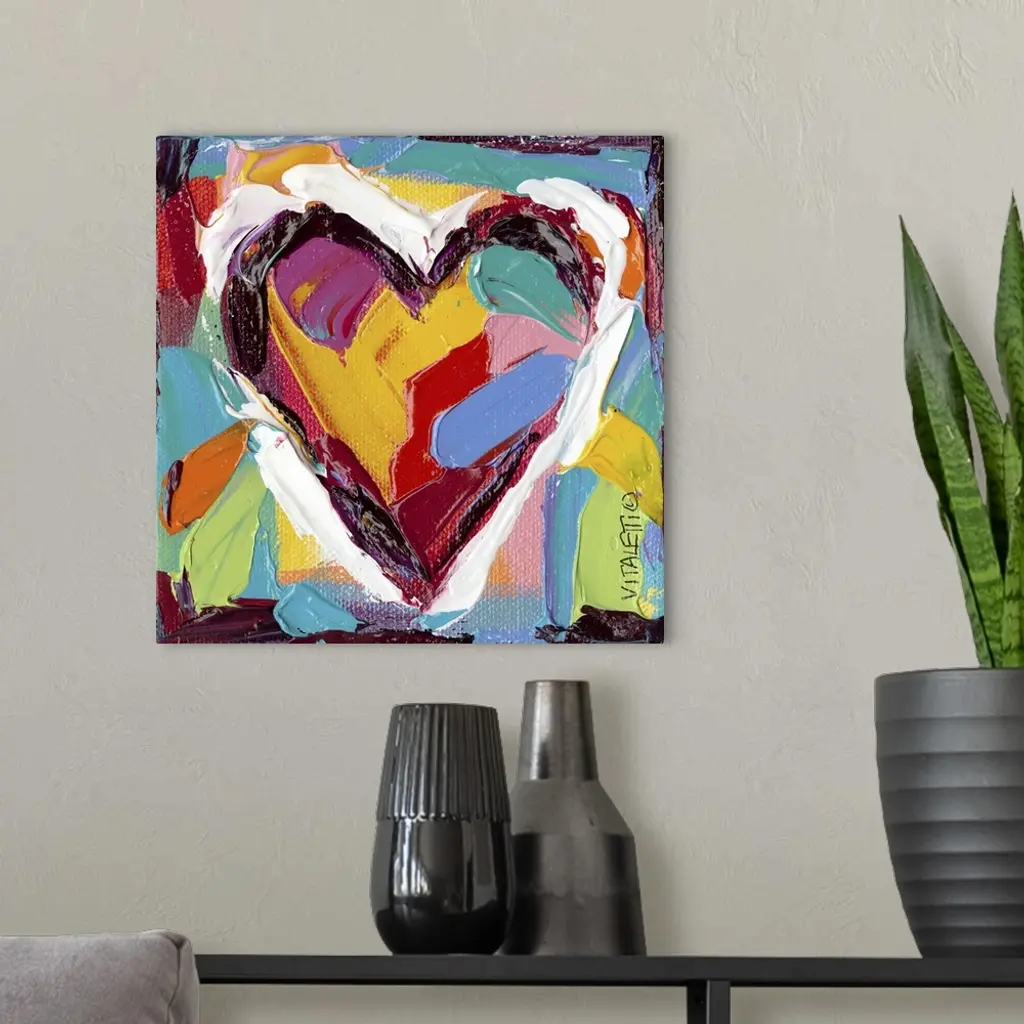Artwork of a technicolor heart with heavy dabs of paint and vivid colors.