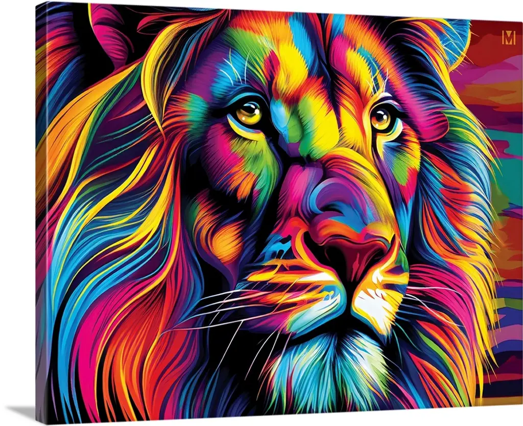 Bring contemporary abstraction to your home with this large 36W x 28H Metal Wall Art. This Colorful Fire Lion Metal Artwork makes it the focal point of any room or office. - White gloss coating ensures colors are extra vibrant with light reflection.- Aluminum grade sheet metal with 1-inch mounting frame on the back giving the illusion that the artwork is floating on the wall.- Mounting brackets are included along with instructions.- High quality digital images are created directly into a glossy aluminum panel producing a stunning and captivating print into the glossy finish of the metal.- Water, fire and scratch resistant HD aluminum panels.- Looks better than any photo paper and guaranteed to last at least 20 years- Easy to clean with a microfiber cloth. Colors are far superior to regular canvas art. - Easy to hang