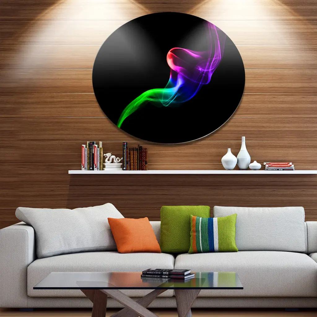 Bring Contemporary Abstraction to your home with this large Circle Metal wall art. This Colorful Fractal Fire Design on Black Metal Artwork makes it the focal point of any room or office. - White Gloss Coating ensures colors are extra vibrant with light reflection.- Aluminum grade Sheet Metal with 1 inch mounting frame on the back giving the illusion that the artwork is floating on the wall..- Mounting Brackets are included along with instructions.- High Quality Digital images are created directly into a glossy aluminum panel producing a stunning and captivating print into the glossy finish of the metal.- Water, Fire and Scratch resistant HD Aluminum panels.- Looks better than any photo paper and guaranteed to last at least 20 years- Easy to clean with a microfiber cloth. Colors are far superior to regular Canvas Art. - Easy to Hang