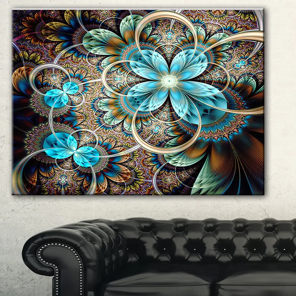 The Colorful Fractal Flowers with Blue Shade canvas art print is sure to make an impression on anyone who sees it. This artwork is gallery wrapped around a 1-inch solid wood frame and arrives carefully packaged and entirely ready to hang on the wall. Design Art only uses the highest resolution and pigments to ensure a crisp colorful print that is never faded or pixelated. This artwork is sure to be a conversation starter in any home or office.