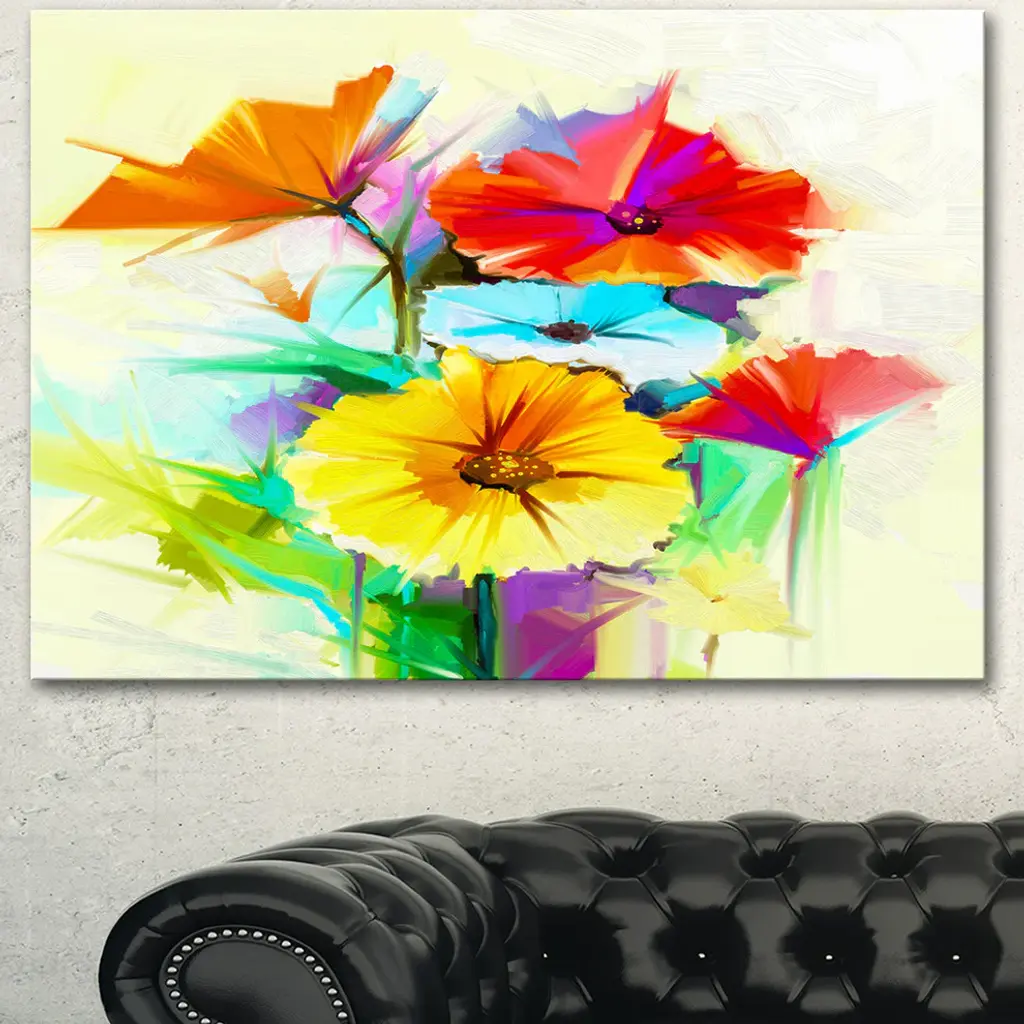 Colorful Gerbera Flower Sketch On White, Floral Canvas Art Print, 60"x28"