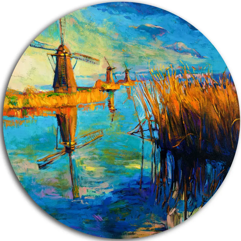 Bring Contemporary Abstraction to your home with this large Circle Metal wall art. This Colorful Lake with Boats Metal Artwork makes it the focal point of any room or office. - White Gloss Coating ensures colors are extra vibrant with light reflection.- Aluminum grade Sheet Metal with 1 inch mounting frame on the back giving the illusion that the artwork is floating on the wall..- Mounting Brackets are included along with instructions.- High Quality Digital images are created directly into a glossy aluminum panel producing a stunning and captivating print into the glossy finish of the metal.- Water, Fire and Scratch resistant HD Aluminum panels.- Looks better than any photo paper and guaranteed to last at least 20 years- Easy to clean with a microfiber cloth. Colors are far superior to regular Canvas Art. - Easy to Hang