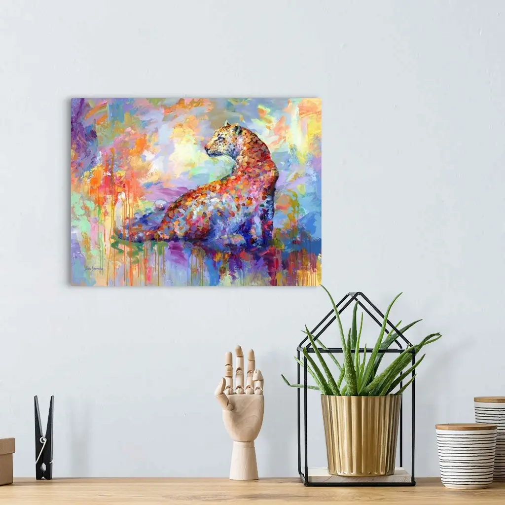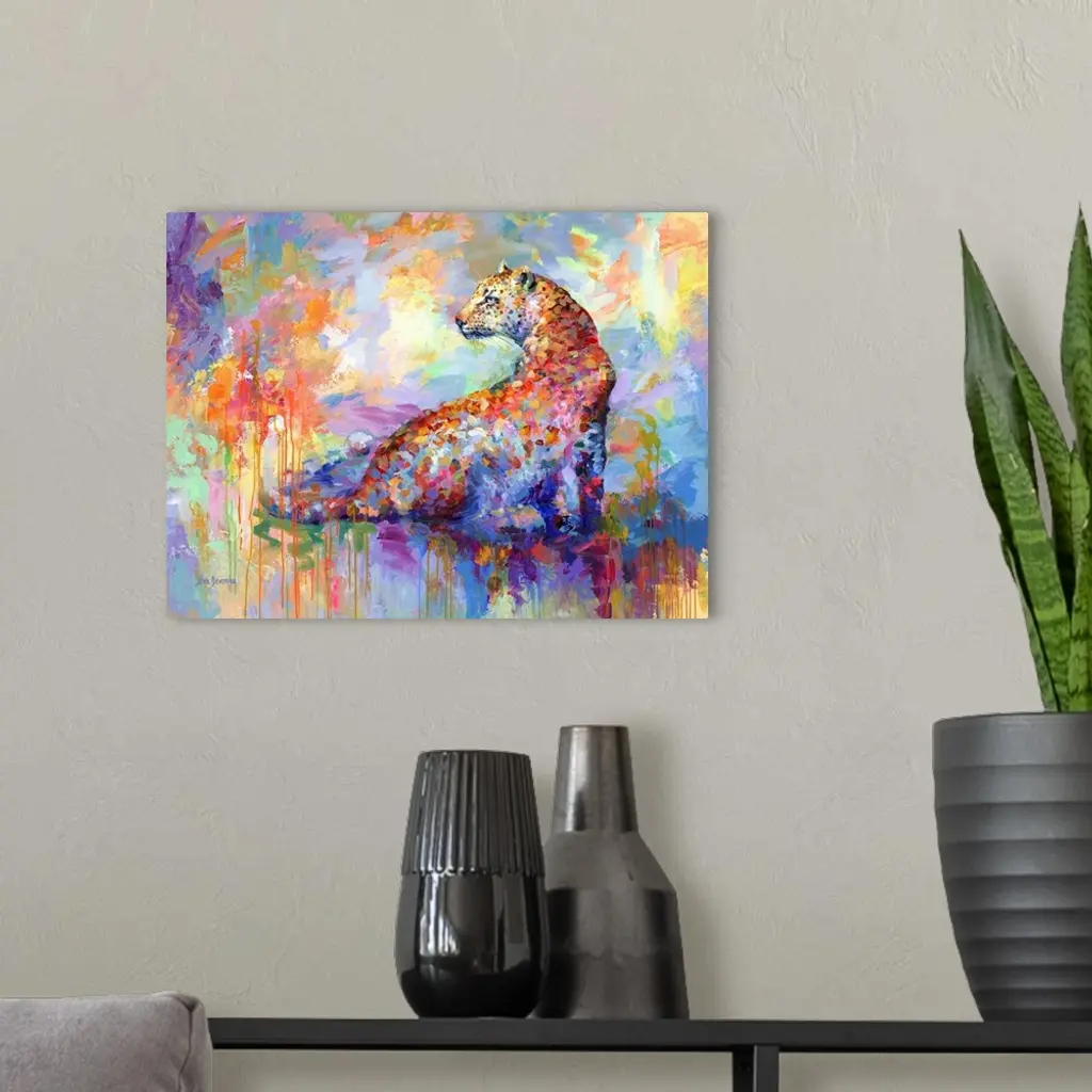 Contemporary painting of a vibrant and colorful leopard.