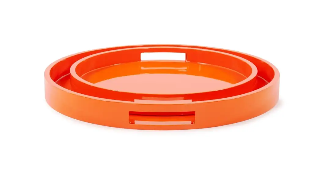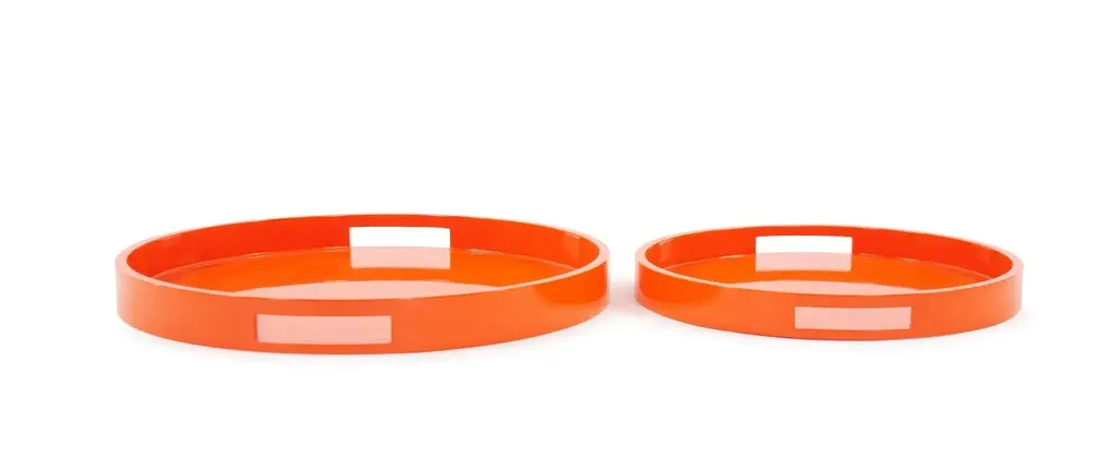 Colorful Orange Round Trays - Set Of 2