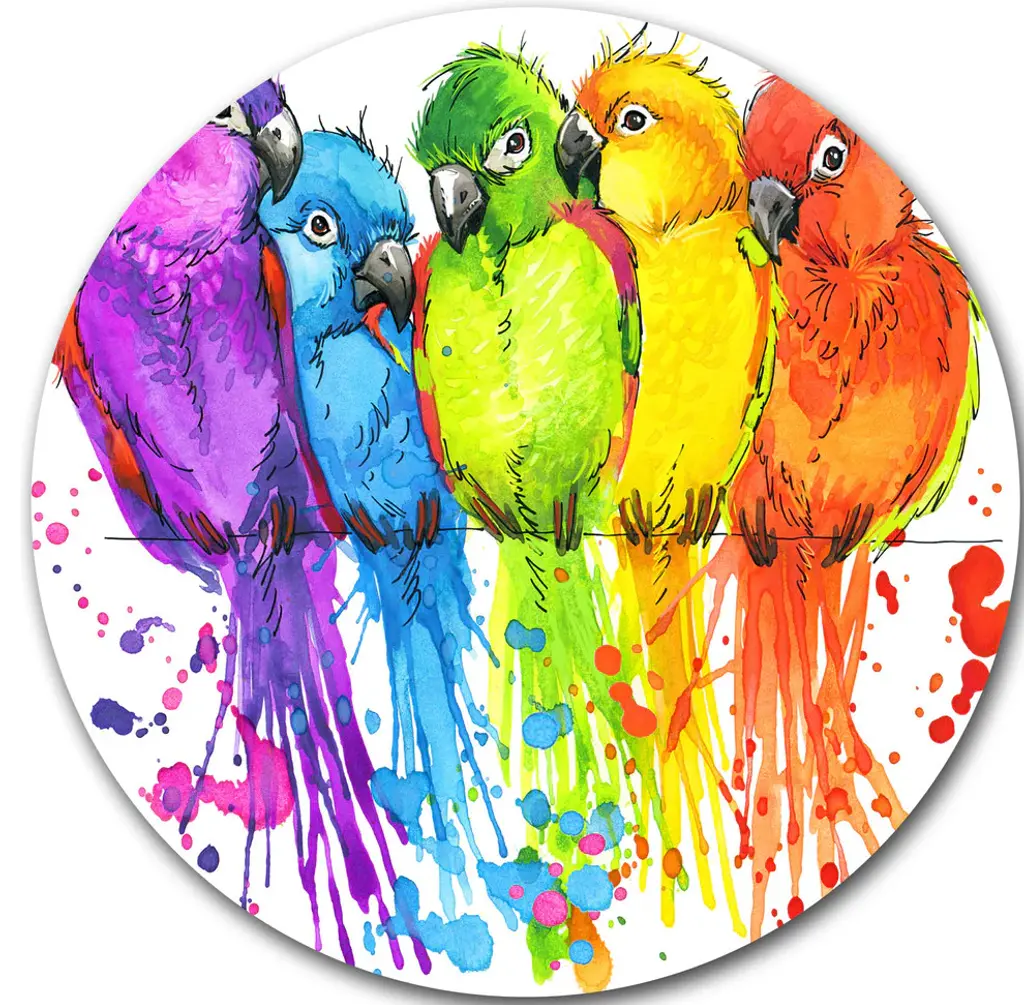 Bring contemporary abstraction to your home with this large 36W x 28H Metal Wall Art. This Colorful Parrots Illustration Metal Artwork makes it the focal point of any room or office. - White gloss coating ensures colors are extra vibrant with light reflection.- Aluminum grade sheet metal with 1 inch mounting frame on the back giving the illusion that the artwork is floating on the wall..- Mounting brackets are included along with instructions.- High quality digital images are created directly into a glossy aluminum panel producing a stunning and captivating print into the glossy finish of the metal.- Water, fire and scratch resistant HD aluminum panels.- Looks better than any photo paper and guaranteed to last at least 20 years- Easy to clean with a microfiber cloth. Colors are far superior to regular canvas art. - Easy to hang