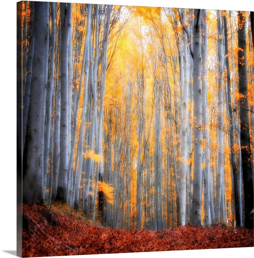 Colorful Red Forest At Sunset, Modern Forest Round Wall Art, 23"