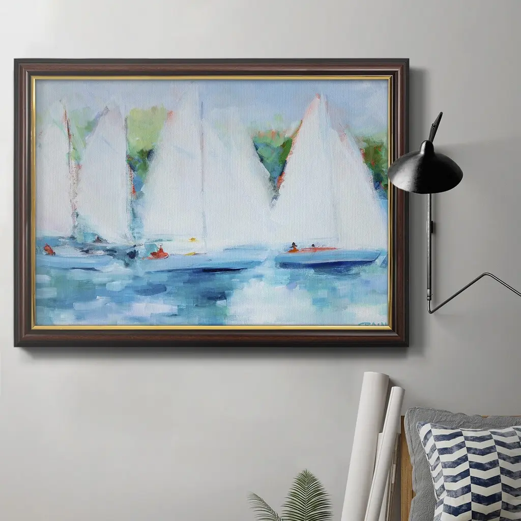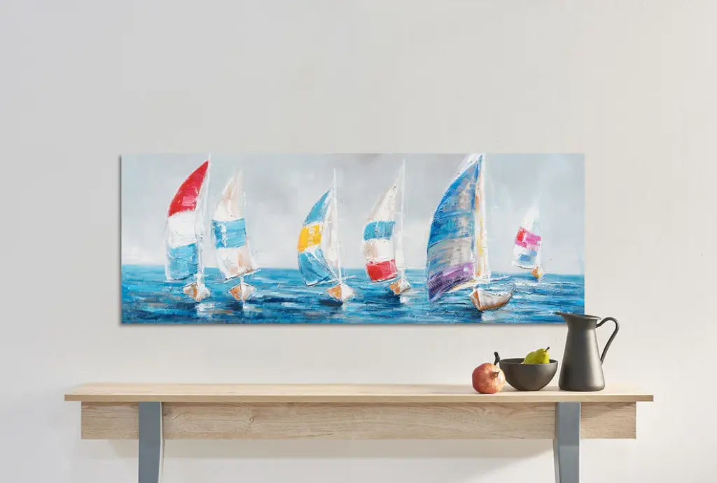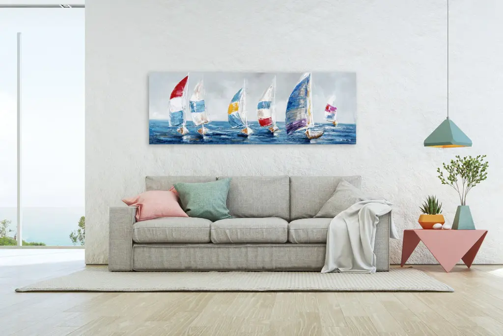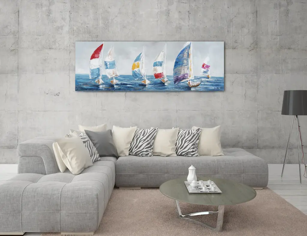 "Colorful Sailboats I" Hand Painted Canvas Art, 60"x20"