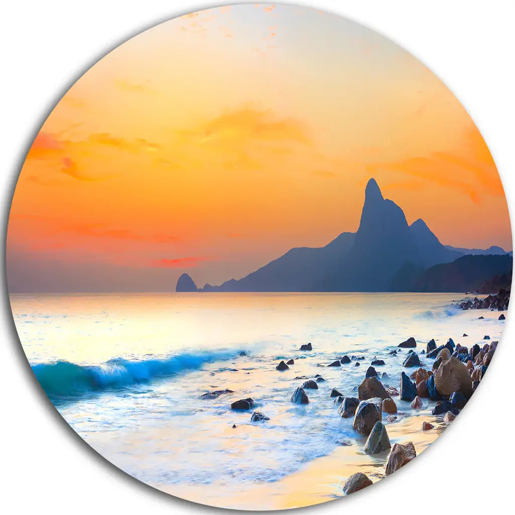 Bring Contemporary Abstraction to your home with this large Circle Metal wall art. This Colorful Seashore with Rocky Beach Metal Artwork makes it the focal point of any room or office. - White Gloss Coating ensures colors are extra vibrant with light reflection.- Aluminum grade Sheet Metal with 1 inch mounting frame on the back giving the illusion that the artwork is floating on the wall..- Mounting Brackets are included along with instructions.- High Quality Digital images are created directly into a glossy aluminum panel producing a stunning and captivating print into the glossy finish of the metal.- Water, Fire and Scratch resistant HD Aluminum panels.- Looks better than any photo paper and guaranteed to last at least 20 years- Easy to clean with a microfiber cloth. Colors are far superior to regular Canvas Art. - Easy to Hang