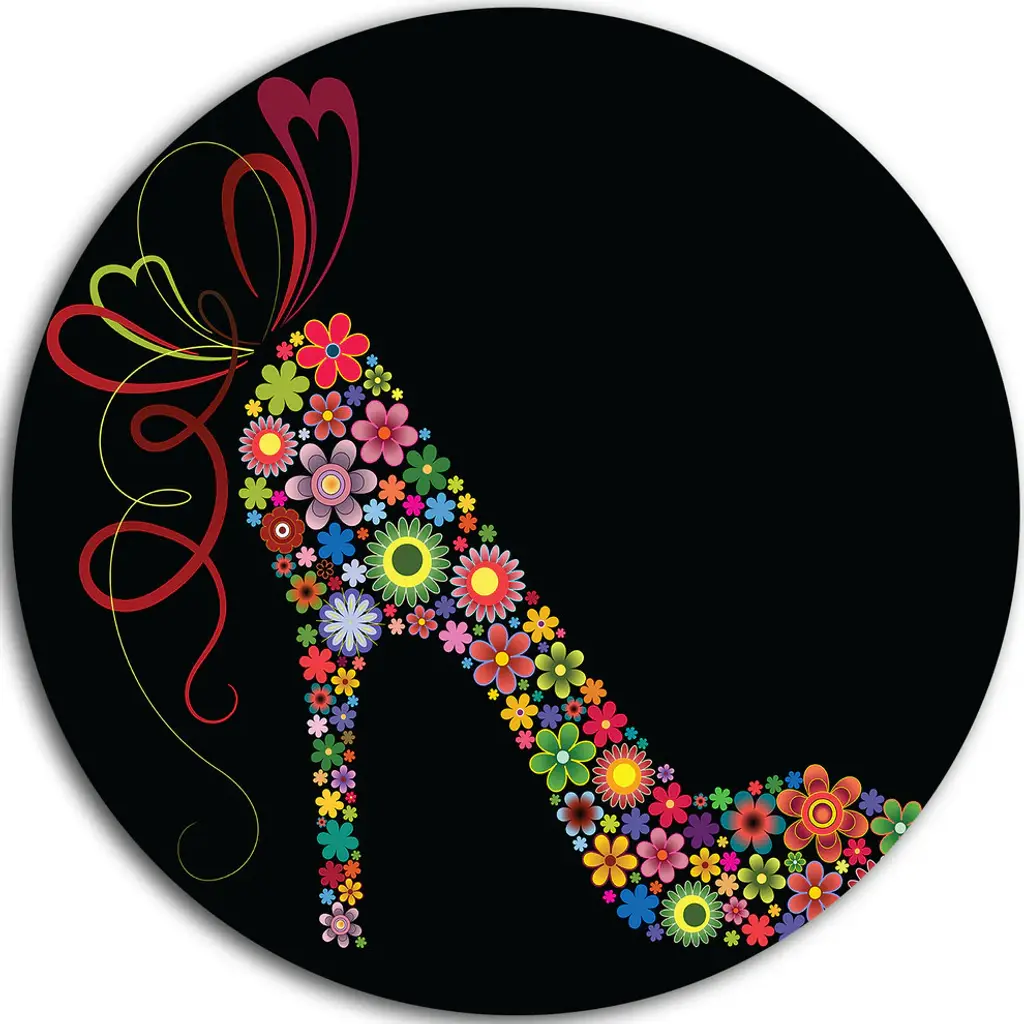 Bring contemporary abstraction to your home with this large 36W x 28H Metal Wall Art. This Colorful Shoe with a Bow Metal Artwork makes it the focal point of any room or office. - White gloss coating ensures colors are extra vibrant with light reflection.- Aluminum grade sheet metal with 1-inch mounting frame on the back giving the illusion that the artwork is floating on the wall.- Mounting brackets are included along with instructions.- High quality digital images are created directly into a glossy aluminum panel producing a stunning and captivating print into the glossy finish of the metal.- Water, fire and scratch resistant HD aluminum panels.- Looks better than any photo paper and guaranteed to last at least 20 years- Easy to clean with a microfiber cloth. Colors are far superior to regular canvas art. - Easy to hang