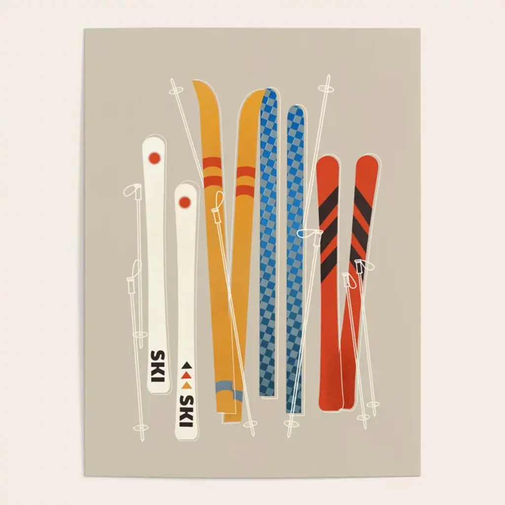 Colorful Ski Illustration And Pattern No 2 Canvas Print