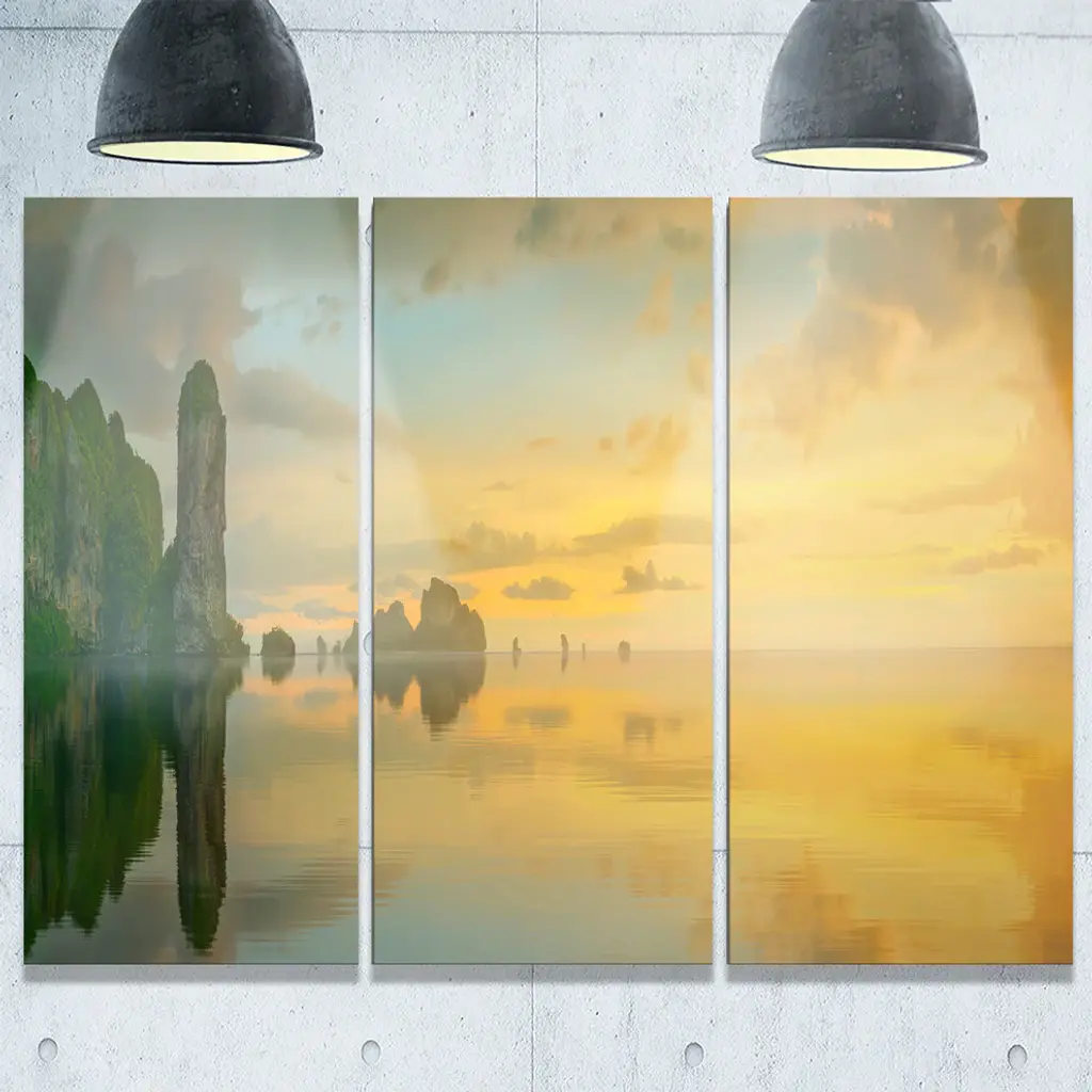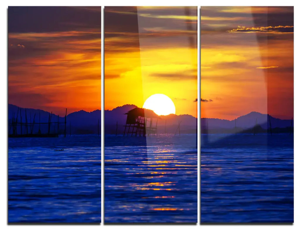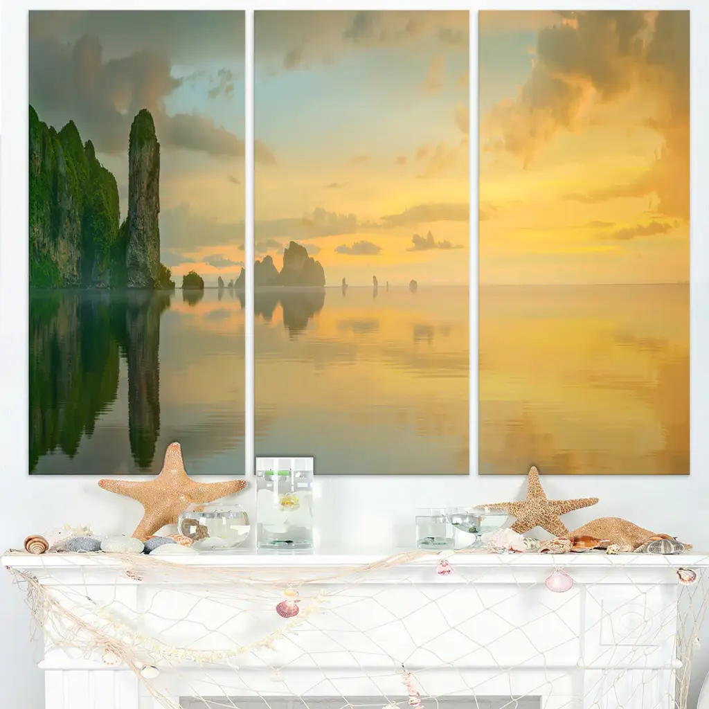 "Colorful Sky And Board On Beach" Metal Wall Art, 3 Panels, 36"x28"