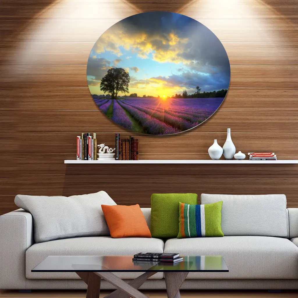 Colorful Sky Over Vibrant Lavender Field, Floral Round Wall Art, 36"