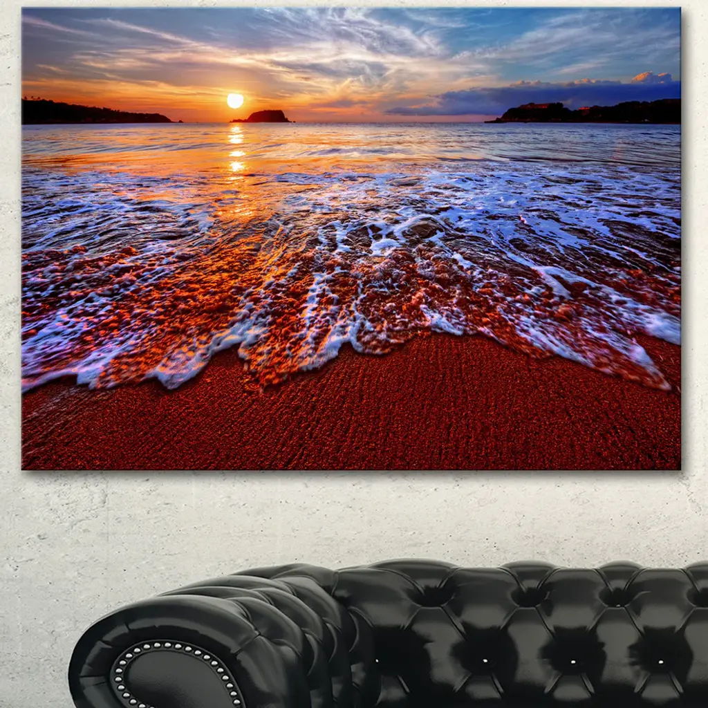 Colorful Sunset With Bright Waters, Seashore Canvas Art Print, 60"x28"