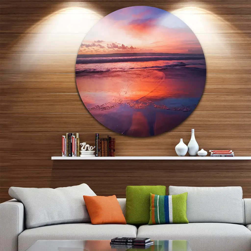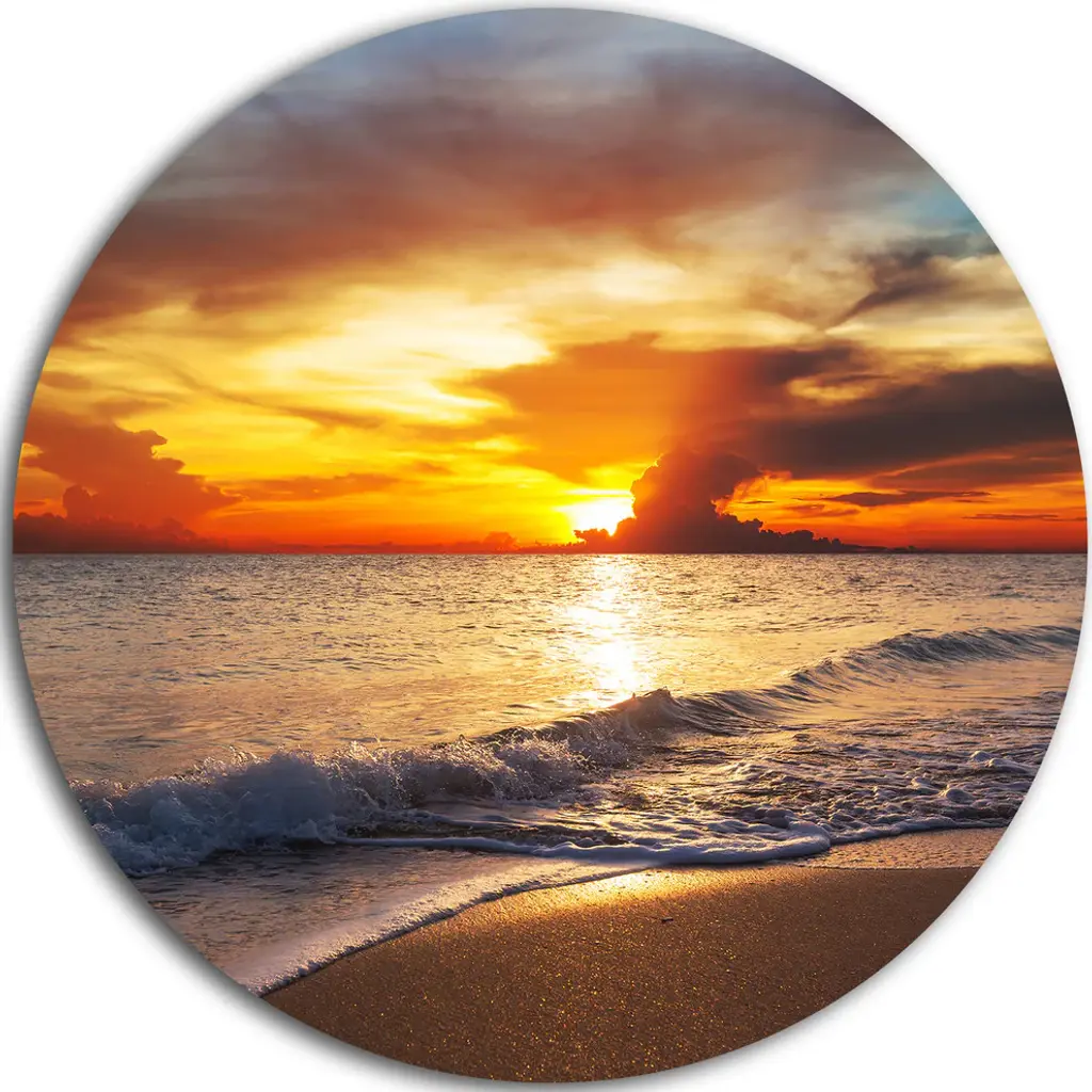 Colorful Tropical Beach With Clouds, Seashore Disc Metal Wall Art, 23"