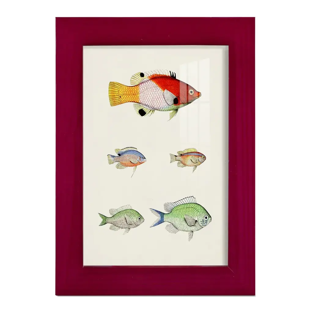 Colorful Tropical Fish I -Framed Print W/glass-Cherry Red - 12x15 - Maple