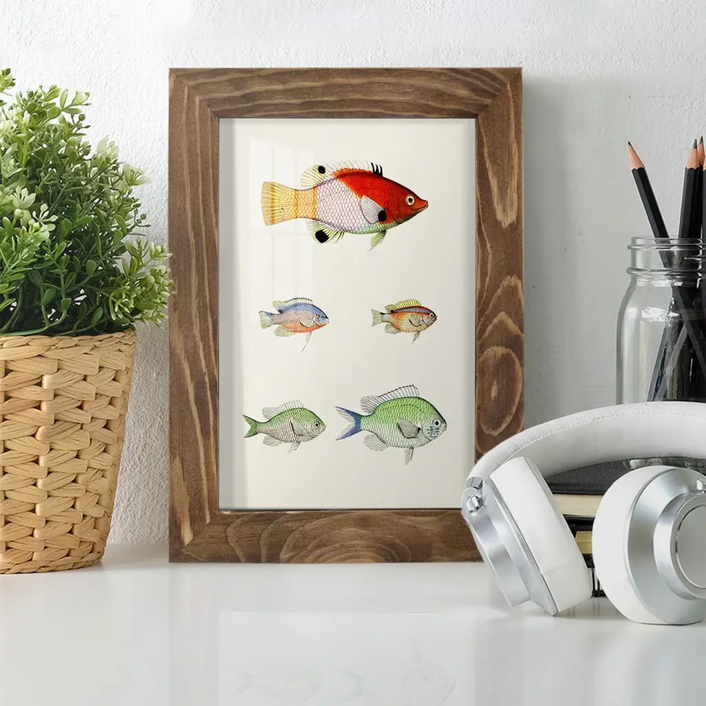 Colorful Tropical Fish I -EZ SWITCH Framed Print w/glass-Cherry Red A delightful, framed print. Featuring a solid wood frame with real wood glass. This premium print is giclee quality. In addition, every frame features a removable back and table top stand. This allows you to change your art in the future or to just stand the art on a table for a new look. We are sure you'll enjoy our new series of EZ SWITCH Framed Art. Solid Wood Frame Real Glass Removable / Replaceable Art Built in Tabletop Stand Sizes range from 4x6 up to 12x15 - buy just one or pair them up as sets as you see fit.
