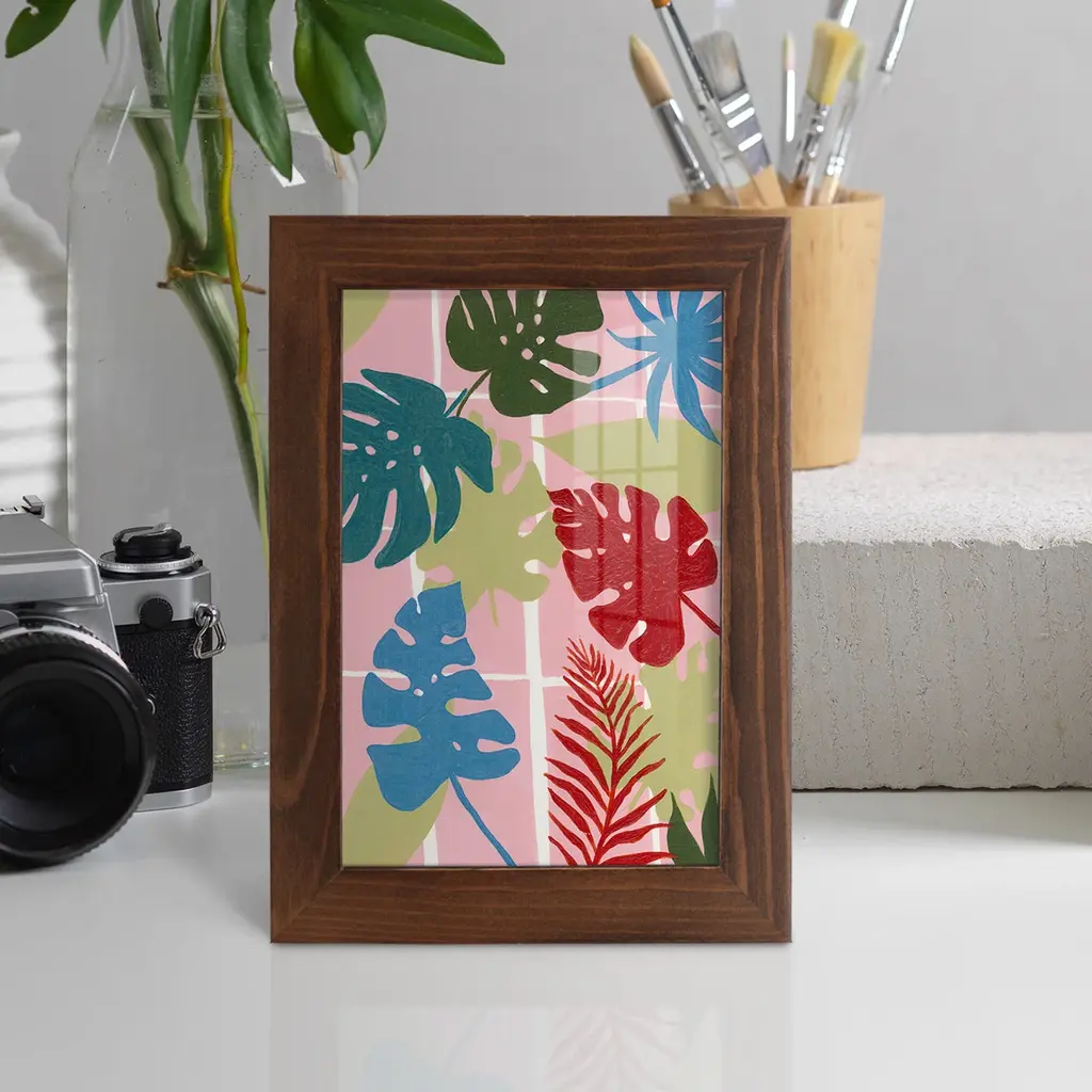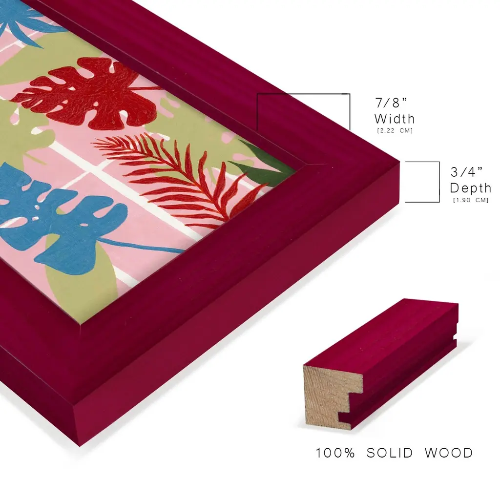 Colorful Tropics I -EZ SWITCH Framed Print w/glass-Cherry Red A delightful, framed print. Featuring a solid wood frame with real wood glass. This premium print is giclee quality. In addition, every frame features a removable back and table top stand. This allows you to change your art in the future or to just stand the art on a table for a new look. We are sure you'll enjoy our new series of EZ SWITCH Framed Art. Solid Wood Frame Real Glass Removable / Replaceable Art Built in Tabletop Stand Sizes range from 4x6 up to 12x15 - buy just one or pair them up as sets as you see fit.