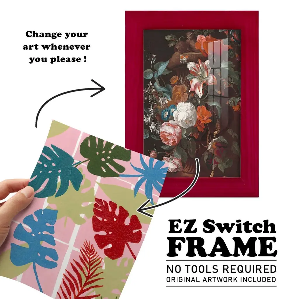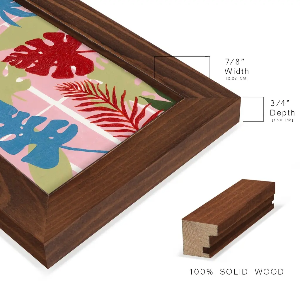 Colorful Tropics I -EZ SWITCH Framed Print w/glass-Cherry Red A delightful, framed print. Featuring a solid wood frame with real wood glass. This premium print is giclee quality. In addition, every frame features a removable back and table top stand. This allows you to change your art in the future or to just stand the art on a table for a new look. We are sure you'll enjoy our new series of EZ SWITCH Framed Art. Solid Wood Frame Real Glass Removable / Replaceable Art Built in Tabletop Stand Sizes range from 4x6 up to 12x15 - buy just one or pair them up as sets as you see fit.