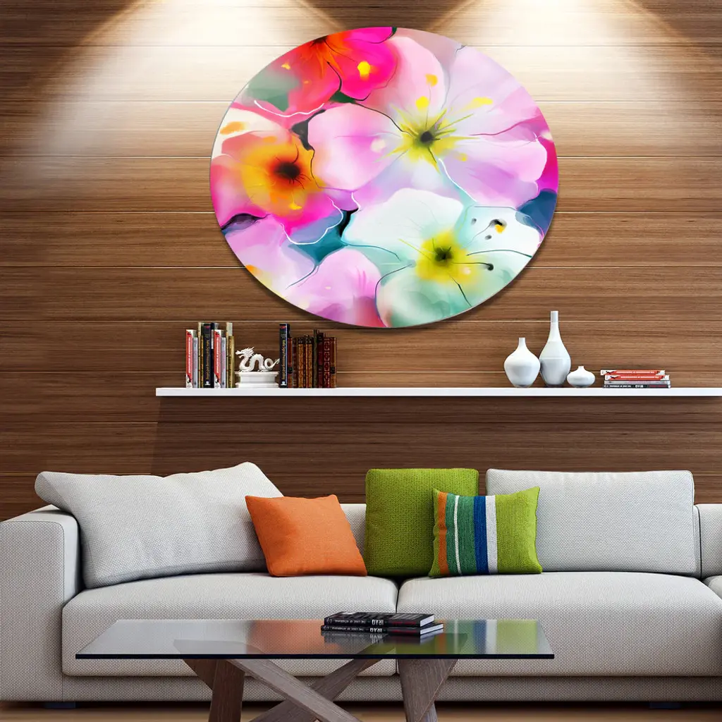 Colorful Watercolor Floral Pattern, Floral Disc Metal Artwork, 23"