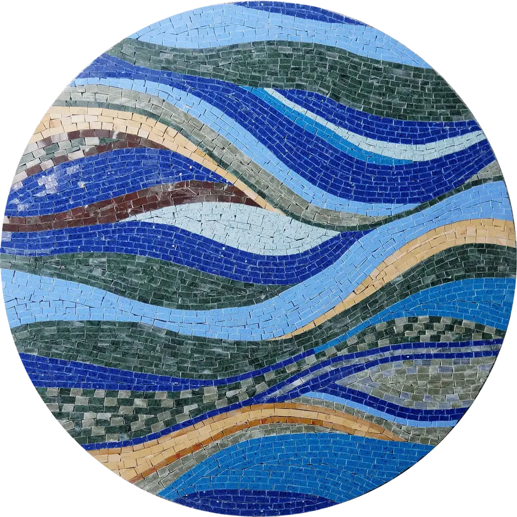 Discover the enchanting allure of "Colorful Waves in Pastel - Mosaic Art," a striking piece that transforms any space with its soothing blend of pastel hues. This captivating artwork features a harmonious design that mimics the gentle ebb and flow of ocean waves, bringing a sense of serenity and calm to your environment. Crafted with utmost care, each mosaic is constructed from premium quality natural stones, thoughtfully hand-selected for their unique colors and textures. Among these exquisite materials are rare, exotic Blue Bahia stones, whose deep cerulean and tropical blue luxury evoke the oceanic brilliance of faraway shores. Radiant quartz varieties such as luminous Orange Quartz and shimmering Prisma Blue Quartz add a jewel-like, prismatic sparkle, while the translucent brilliance of Aqua Blue Quartz complements the composition with cool, crystalline depth. The mosaic is further enriched by the scintillating hues of Light Purple Quartz and Dark Purple Quartz, whose radiant, crystalline facets lend a captivating and silky visual texture. As you gaze upon this beautiful creation, you’ll appreciate the meticulous attention to detail that has gone into placing each piece, resulting in a seamless interplay of colors that evoke a serene atmosphere, perfect for fostering relaxation and tranquility in any setting. Whether displayed indoors or outdoors, this handcrafted mosaic art effortlessly enhances your home decor with its versatile design. Ideal for living rooms, bedrooms, patios, or garden spaces, "Colorful Waves in Pastel" serves as a stunning focal point, creating a beautiful contrast to everyday surroundings and inspiring conversation among guests and family alike. Bring a slice of nature’s beauty indoors and create your very own tranquil oasis. The calming waves of pastel tones, enriched by these exotic materials, invite serenity into your life, encouraging a mindful atmosphere that nurtures peace and relaxation. Elevate your decor today with this exquisite mosaic art that celebrates the artistry of nature and the peaceful essence of water's gentle movement. Experience the perfect blend of artistry and serenity with "Colorful Waves in Pastel - Mosaic Art" – a timeless addition to your living spaces that brings joy and relaxation into your everyday life.