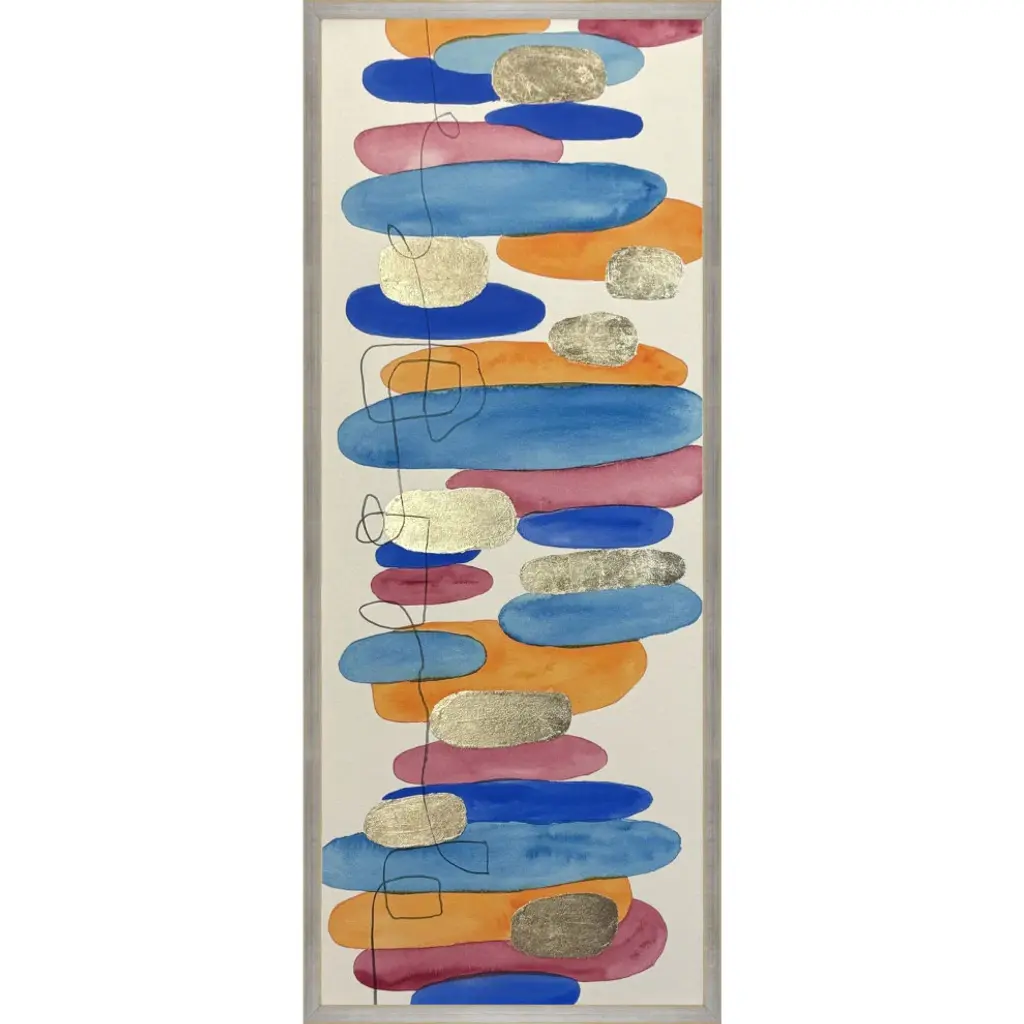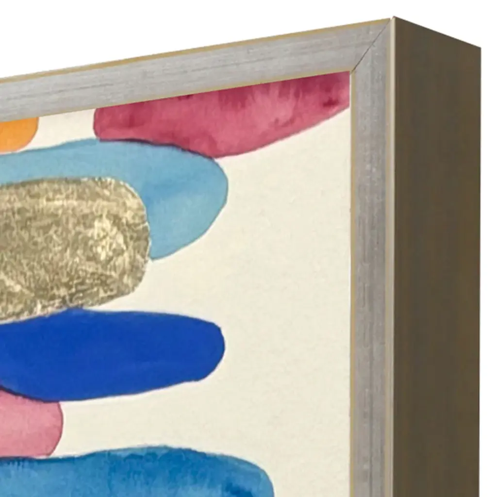 Exclusive hand painted on fine art paper with gold leaf accents. Framed in a contemporary shadow box style silver wood with gold accents.