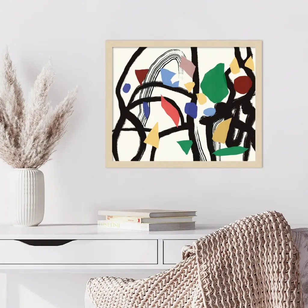 "ART DESCRIPTION: This framed art print was created by Little Dean and printed in Madison, WI. The print is giclee printed using fade-resistant inks for picture-perfect detail and incredible depth of color and finished with a 100% real wood frame. Individually made using traditional custom framing techniques, it has the quality you would expect from your local frame shop. Features: CUSTOM ARTWORK DETAILS: Colors in the Forest 03 by Little Dean. 100% REAL WOOD FRAME DETAILS: The art is framed in the Svelte frame which measures 1 in. wide and stands 1 in. off the wall. QUALITY AND AUTHENTICITY: Prints are giclee printed using fade-resistant inks for picture-perfect detail and incredible depth of color. They are protected with a shatterproof sheet of gallery-quality acrylic, which resists UV rays and light damage better than traditional glass. The artwork is authentically licensed. PROTECTIVE BACKING: Premium paper prints are permanently adhered to a rigid backer board to prevent rippling over time. HASSLE-FREE HANGING: Ready to hang for easy installation. All framed prints have a durable hanging wire attached to the back and a hanging hook and nail. ASSEMBLED IN THE USA: Each piece is assembled to order in Madison, WI USA. FOR HOME OR COMMERCIAL USE: Because of our attention to detail and focus on artistry, architects, interior designers, and homeowners alike choose this framed art print to create beautiful living spaces."