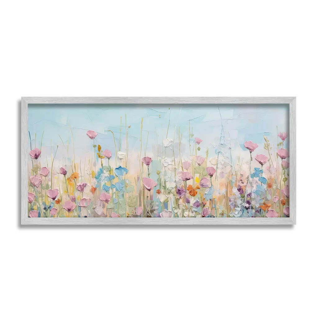 Bursting with lively blooms in shades of coral, yellow, and lavender, this impressionistic floral artwork radiates the joyous energy of a sunlit garden in full bloom. The soft blue and pink background adds a dreamy contrast, perfect for brightening any space with natural beauty. Our Gallery Wrap Canvas Prints are proudly assembled with high quality materials in California, USA. Each piece is printed on a thick, archival grade canvas using Giclee technology. It is then hand-stretched by our experienced artisans over solid wood bars, which will not warp over time. The final product is a piece personally crafted for you to confidently display on your wall. Care and Assembly: Ensure that the location of your piece has little to no exposure to heat, sunlight, and moisture. Wipe clean, only if needed. Each piece includes hanging hardware to hang on your wall vertically.
