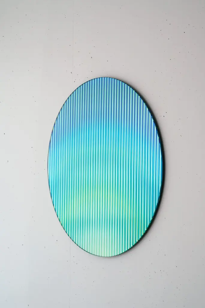The reflective, coloured, rippled glass art panel – designed to add a palette of colour to spaces – reflects light in spaces and adds movement and color whilst creating abstracted reflections. The piece disperses light through its rippled surface creating transitions of colour from various viewpoints. It works as an artistic object for spaces and has been designed with the intention of use for both residential as well as larger scale interior and architectural projects. Bespoke sizes are possible.The item is typically shipped in a custom wooden art crate which will be quoted separately with the shipping cost. It ships with a hanging system suitable for most wall types.