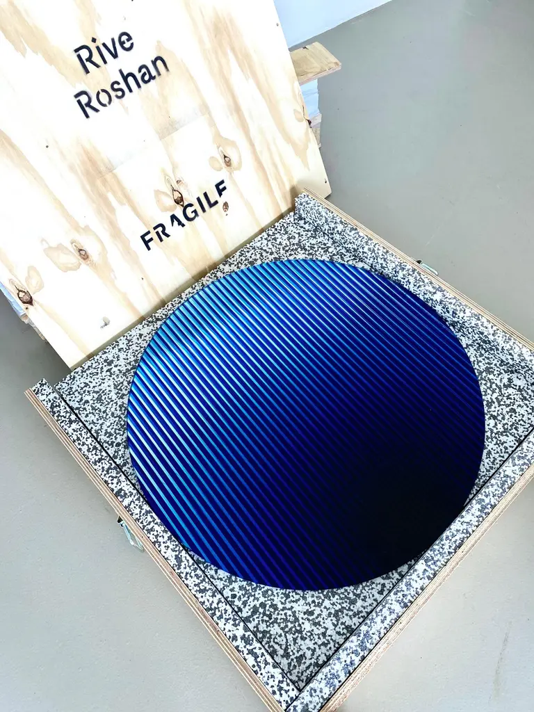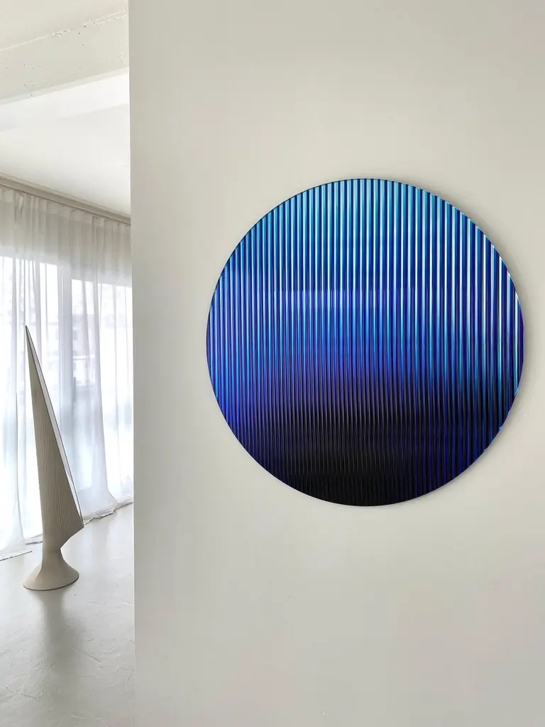 Colour Shift Reflective Art Panel Round, Trichroic Sapphire – Rive Roshan