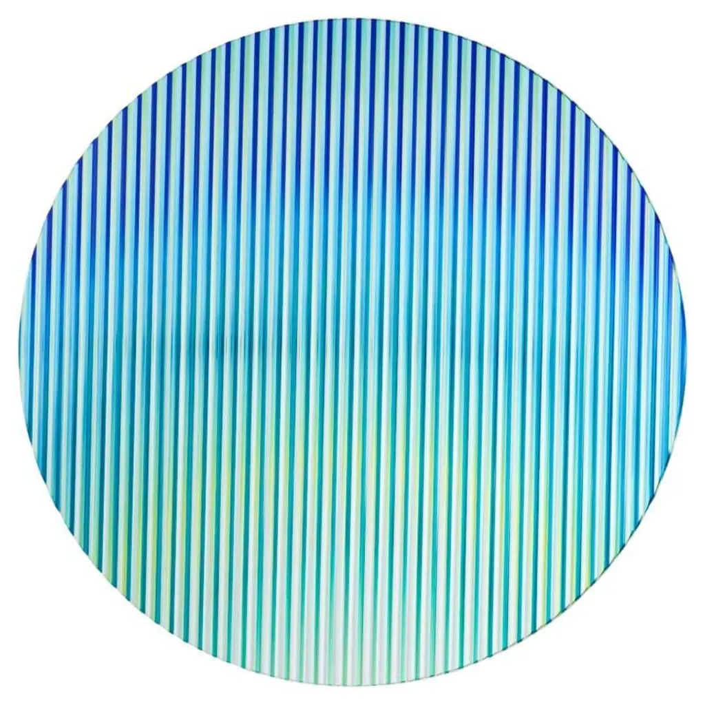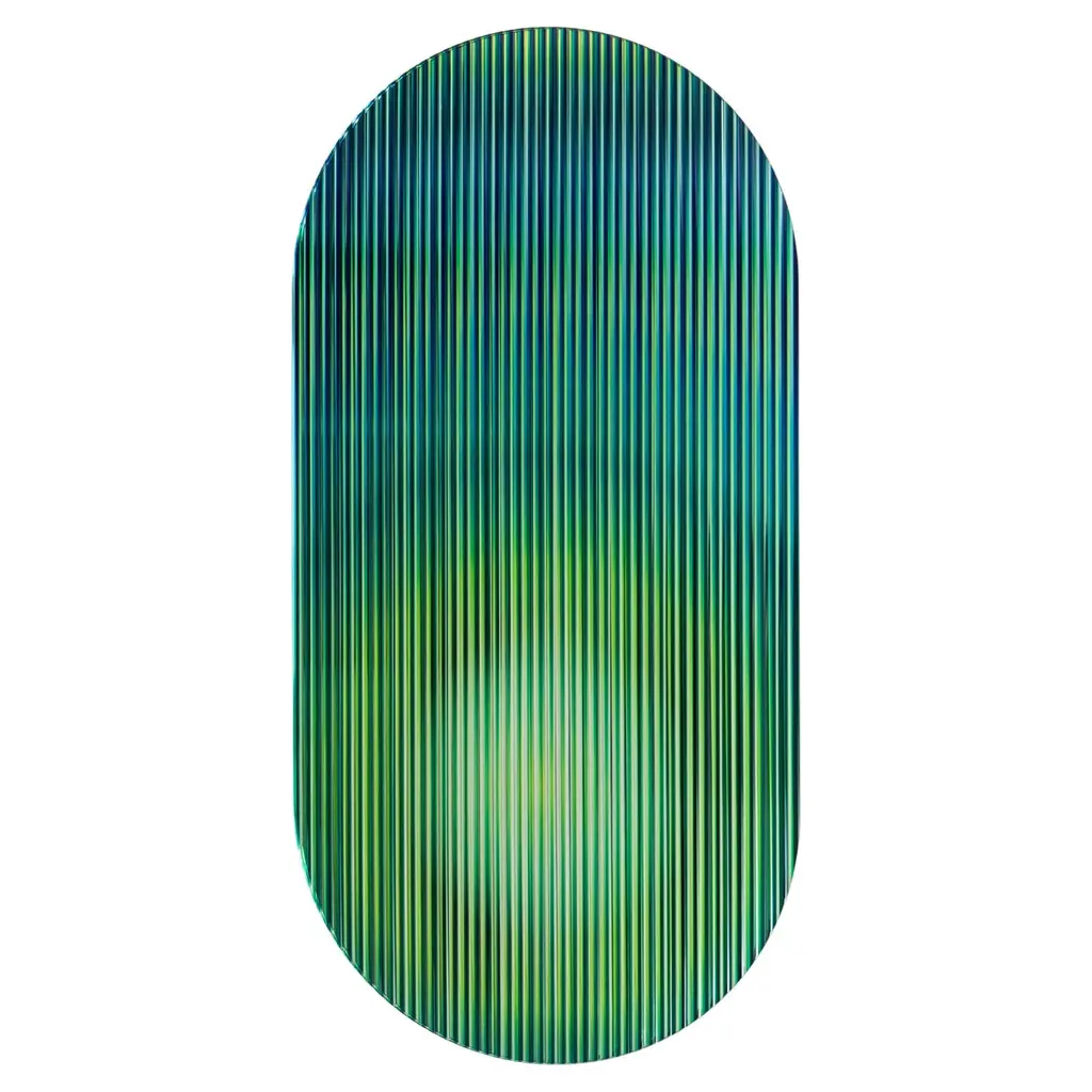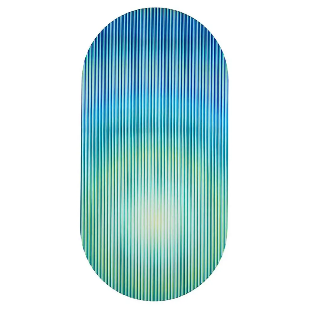 The reflective, coloured, rippled glass art panel – designed to add a palette of colour to spaces – reflects light in spaces and adds movement and color whilst creating abstracted reflections. The piece disperses light through its rippled surface creating transitions of colour from various viewpoints. It works as an artistic object for spaces and has been designed with the intention of use for both residential as well as larger scale interior and architectural projects. Bespoke sizes are possible.The item is typically shipped in a custom wooden art crate which will be quoted separately with the shipping cost. It ships with a hanging system suitable for most wall types.