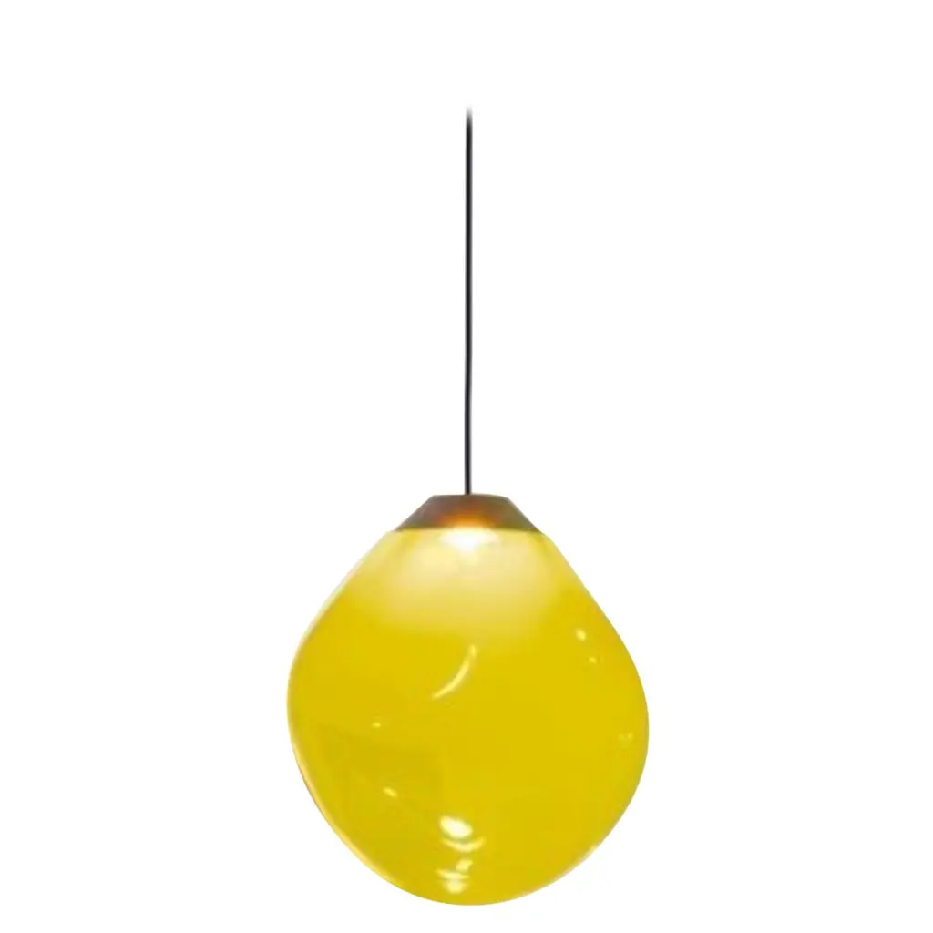 Coloured medium big bubble pendant light by Alex de Witte.Each pendant is unique.Dimensions: D 28 x H 80 cm.Materials: mouth blown glass.It can be purchased as an ensemble or individual, in different dimensions and colors.Exact precise dimensions are not guaranteed, width is always different but generally can only reach 25-40% of the height. Please contact us.The big bubble has already become the icon in Alex de Witte’s oeuvre. These light artworks are all unique as they are mouth blown. Alex is pushing the glass blowers to twist their skills further every time again, up until the very moment in which the Bubbles almost collapse. This requires a tremendous control of craftsmanship.All big bubbles are unique and are initially available in three categories:small, medium and large. The dimensions range from 40 to 110 cm.The big bubble was awarded for Best Product at the 2013 Design District in Amsterdam. A year later it won the Design Plus prize, the Red Dot Design Prize and the Good Design Award at the Chicago Athenaeum.The Big Bubble is exhibited in museums worldwide.Alex de WitteAlex de Witte is fascinated by the universal value of beauty and how to influence that. “It is fascinating to me how people have an overall communal perception of beauty. Like scientific studies have proven over the years, symmetry, repetition, balance and harmony with nature affect people’s idea of perfectness. As a designer it is my quest to try to influence the phenomenon of beauty being found in the beholder’s eye. I aim to play with general perception of beauty and to open up peoples minds in that process.” Alex de Witte constantly forces his own perspective and consequently that of the beholder’s, by twisting the perception of shape and form. Alex is pushing the boundaries of catching the perfect moment in the process of a new work. Is it the so called pregnant moment or the moment right after or even before, which shapes the perfect form? Exactly that playful balance in the process of each work, is what he translates into the ‘initial moment of things’. Every time, Alex first determines strict boundaries within a new design process. After this realm is set considering these limitations, he is searching for the right symmetry and balance that will determine the final form of the new design.All our lamps can be wired according to each country. If sold to the USA it will be wired for the USA for instance.