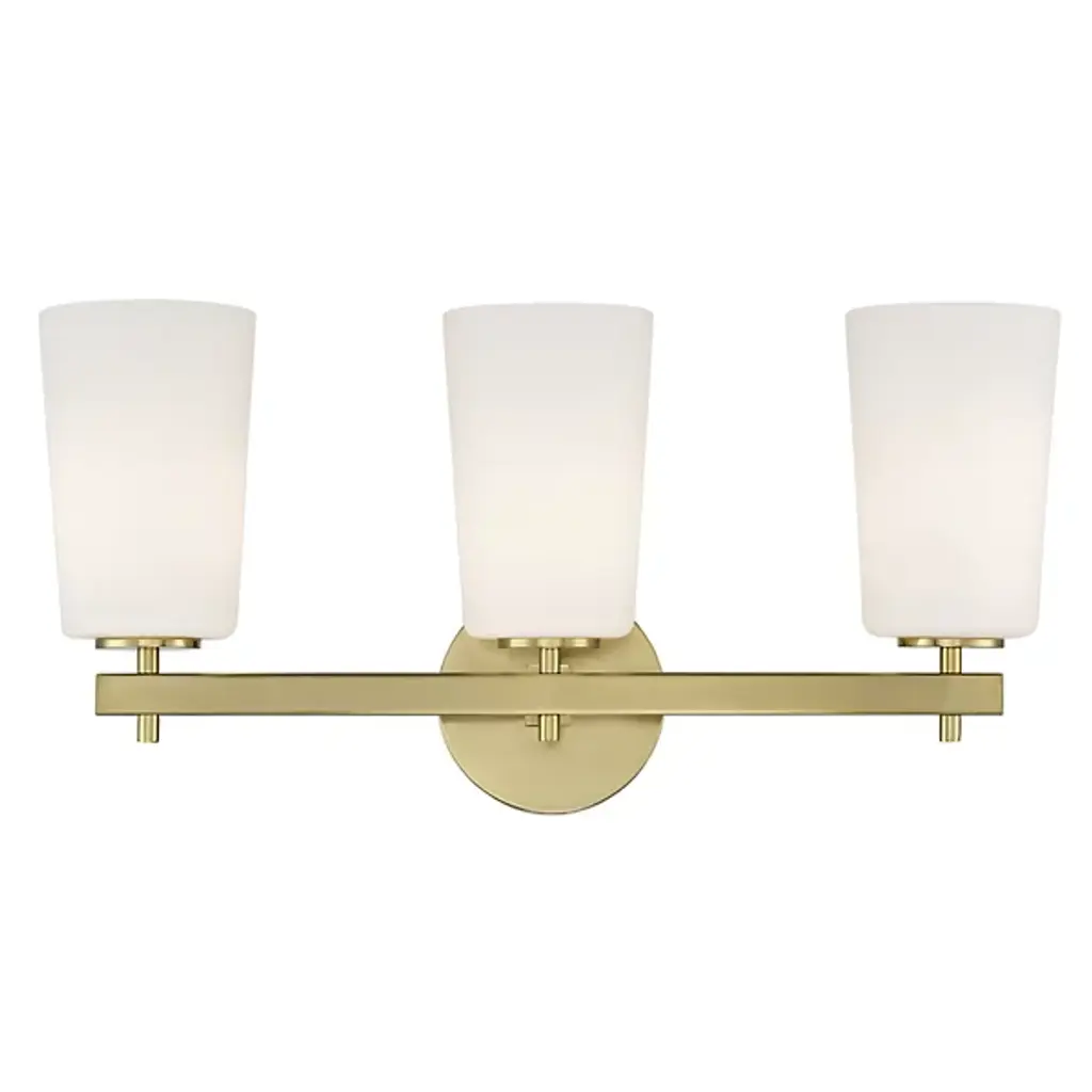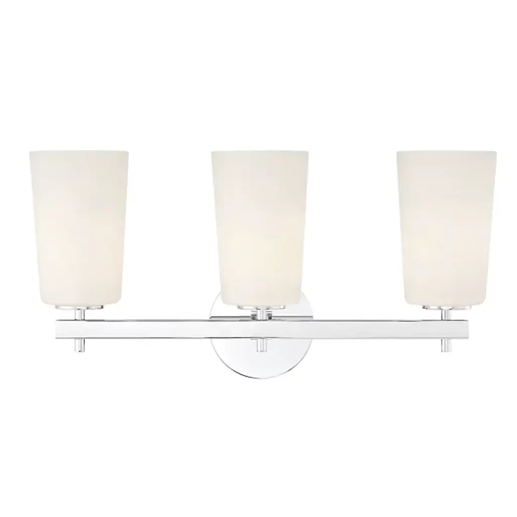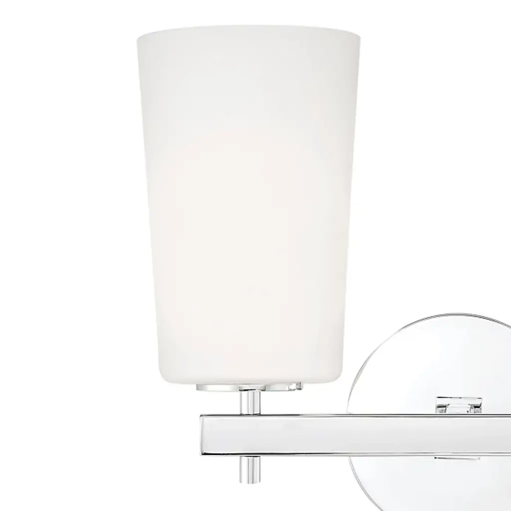 The Colton Vanity Light by Crystorama facilitates the completion of your grooming routine. Cylindrical shades of glass are situated along a slender frame of metal. A sturdy backplate at your wall keeps this light fixture firmly in place. This sconce gives your room a look of richness and is well-placed above your wall-mounted mirror.