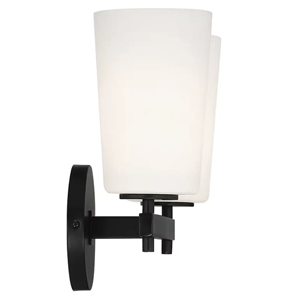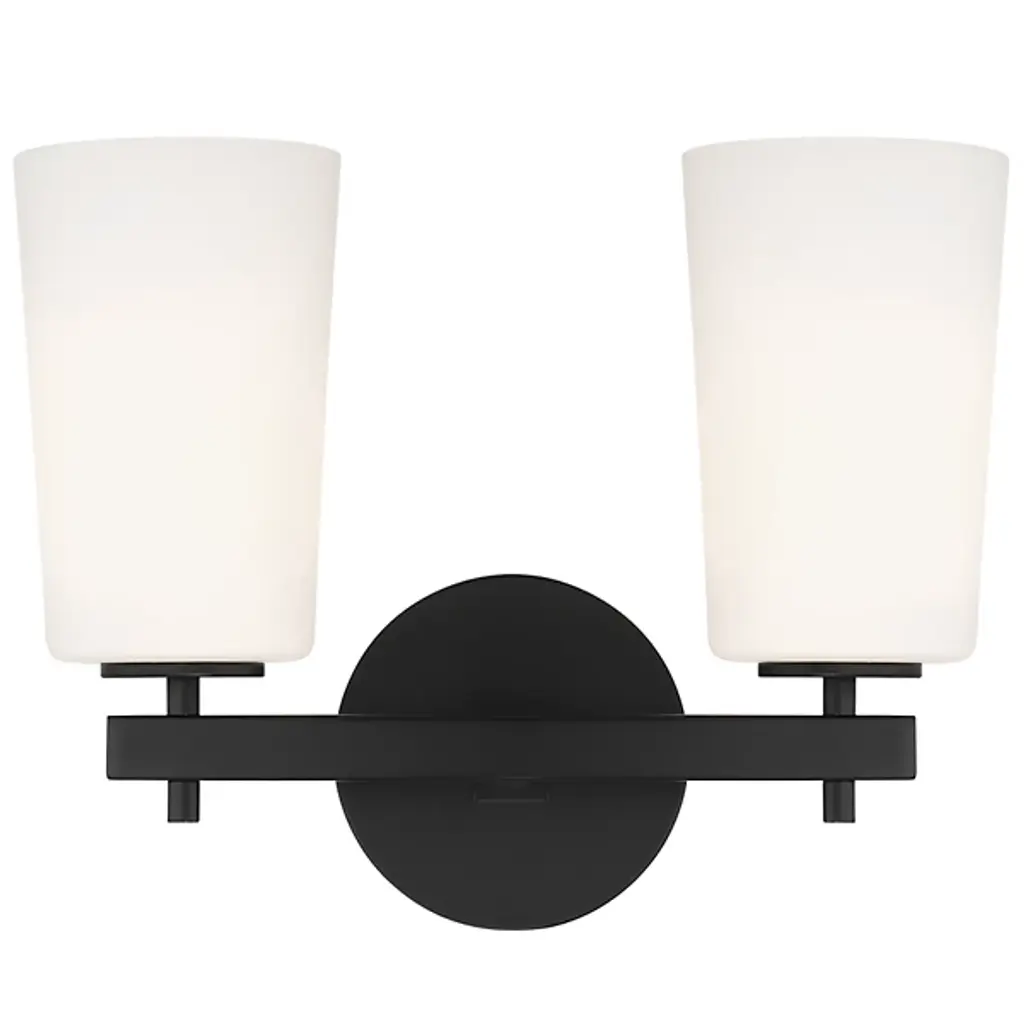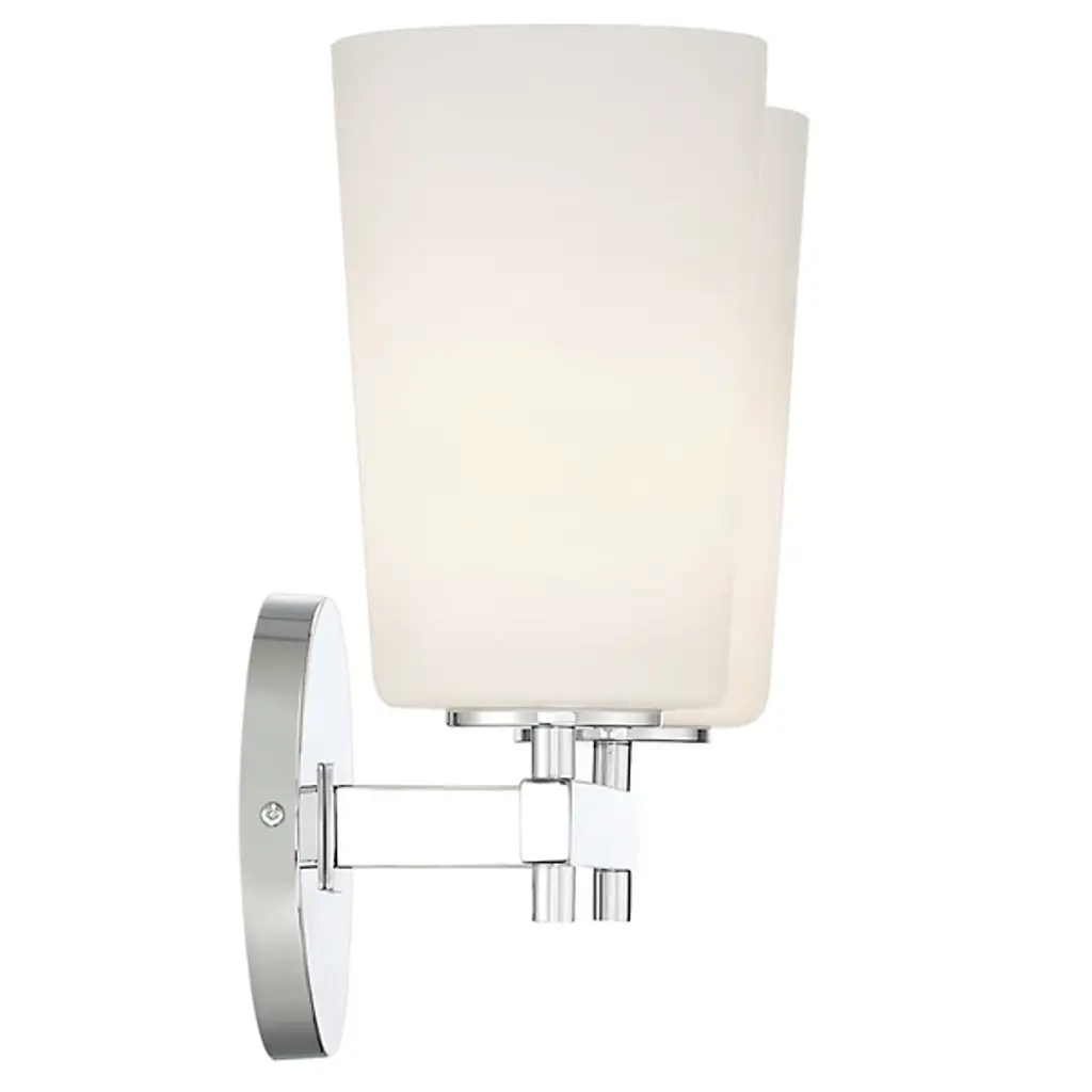 The Colton Vanity Light by Crystorama facilitates the completion of your grooming routine. Cylindrical shades of glass are situated along a slender frame of metal. A sturdy backplate at your wall keeps this light fixture firmly in place. This sconce gives your room a look of richness and is well-placed above your wall-mounted mirror.