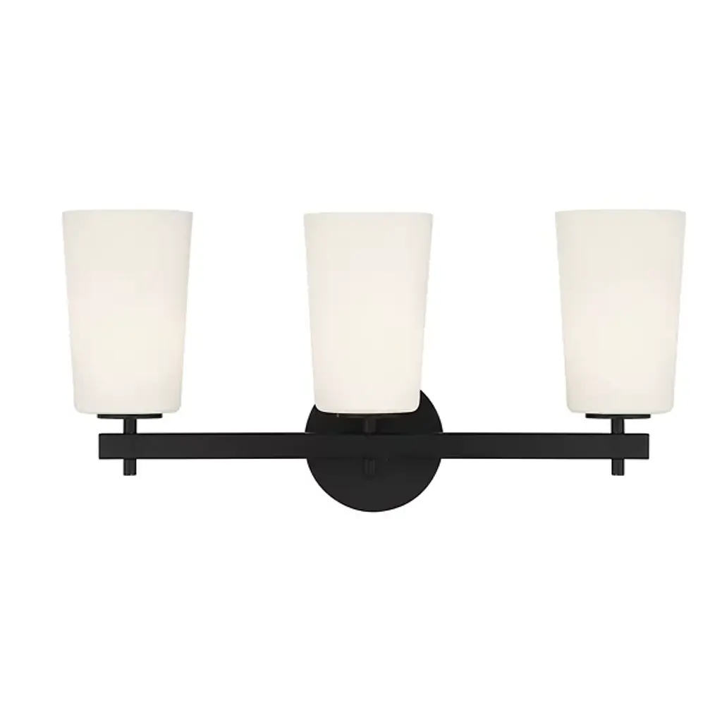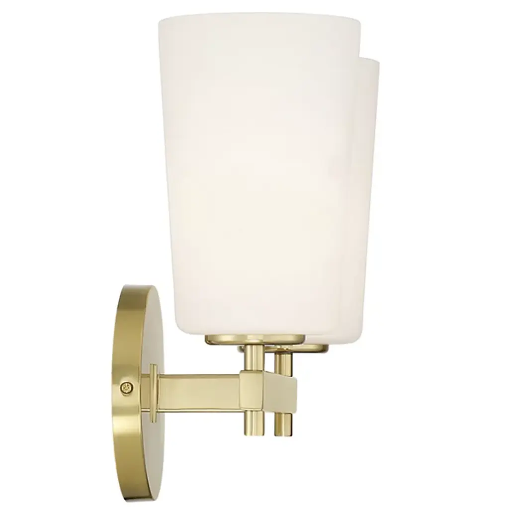 The Colton Vanity Light by Crystorama facilitates the completion of your grooming routine. Cylindrical shades of glass are situated along a slender frame of metal. A sturdy backplate at your wall keeps this light fixture firmly in place. This sconce gives your room a look of richness and is well-placed above your wall-mounted mirror.