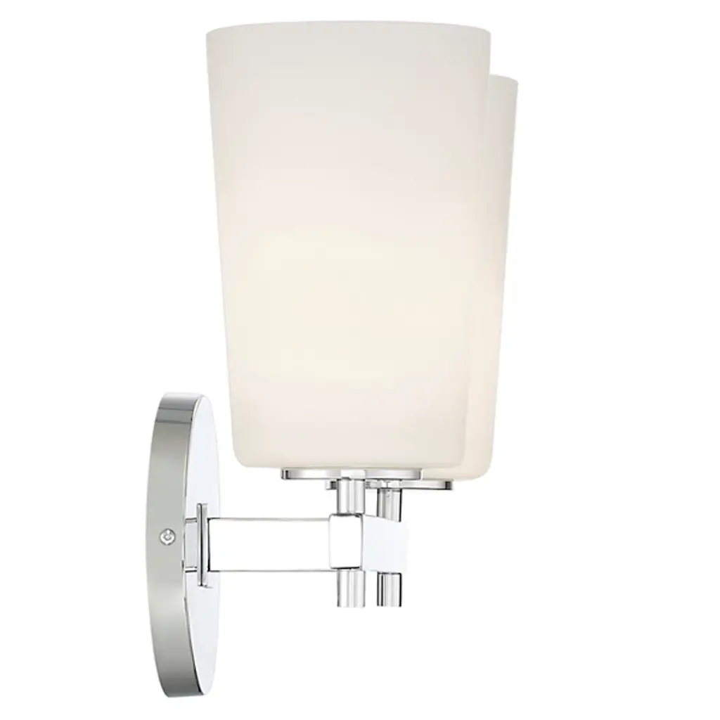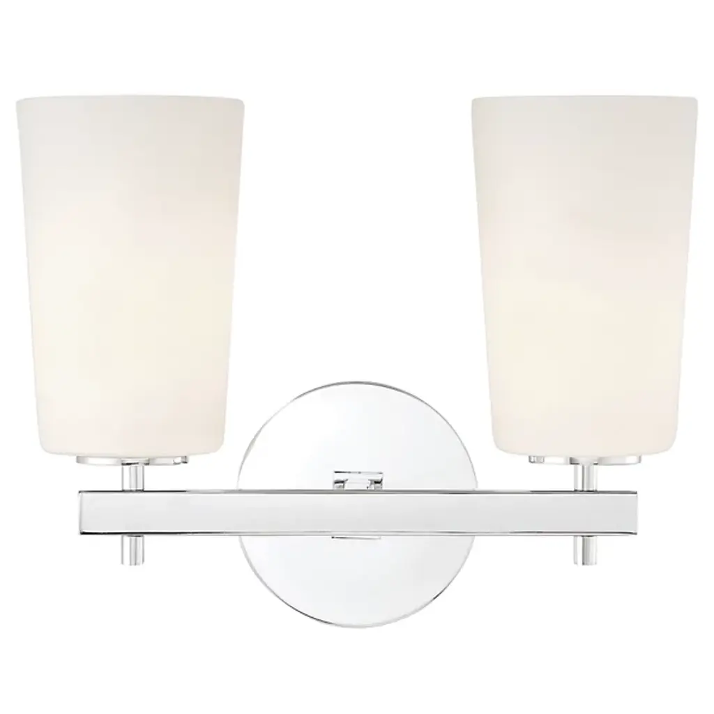 The Colton Vanity Light by Crystorama facilitates the completion of your grooming routine. Cylindrical shades of glass are situated along a slender frame of metal. A sturdy backplate at your wall keeps this light fixture firmly in place. This sconce gives your room a look of richness and is well-placed above your wall-mounted mirror.