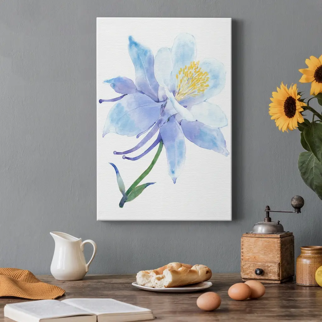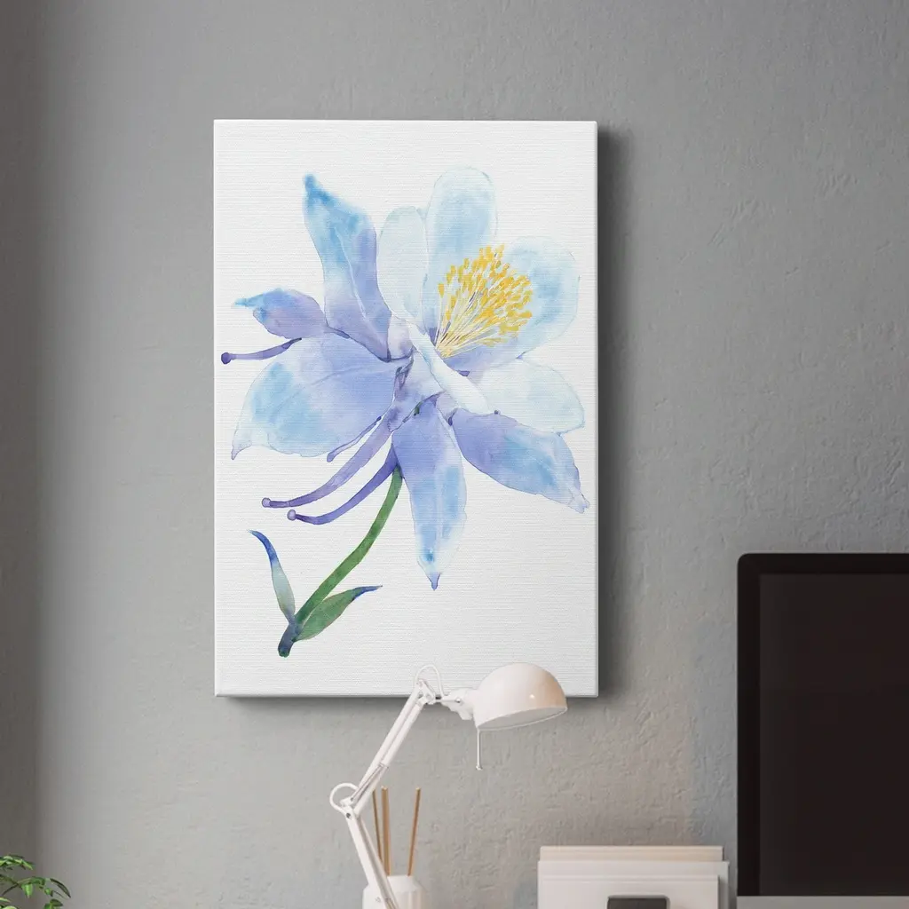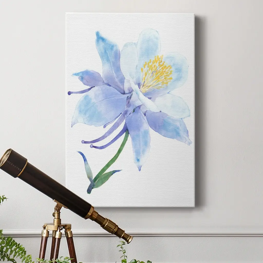 Columbine Bloom I Premium Gallery Wrapped Canvas - Ready to Hang A premium hand stretched gallery wrapped canvas print created to last. Featuring a beveled a solid wood stretcher bar, each piece comes ready to hand 6 SIZES AVAILABLE 8''X12'' - Overall Size 12''X18'' - Overall Size 18''X27'' - Overall Size 24''x36'' - Overall Size 32''x48'' - Overall Size 40''x60'' - Overall Size Each piece is made to order. Built to Last Each piece comes ready to hang Solid wood stretcher Fade and Water resistant Made domestically