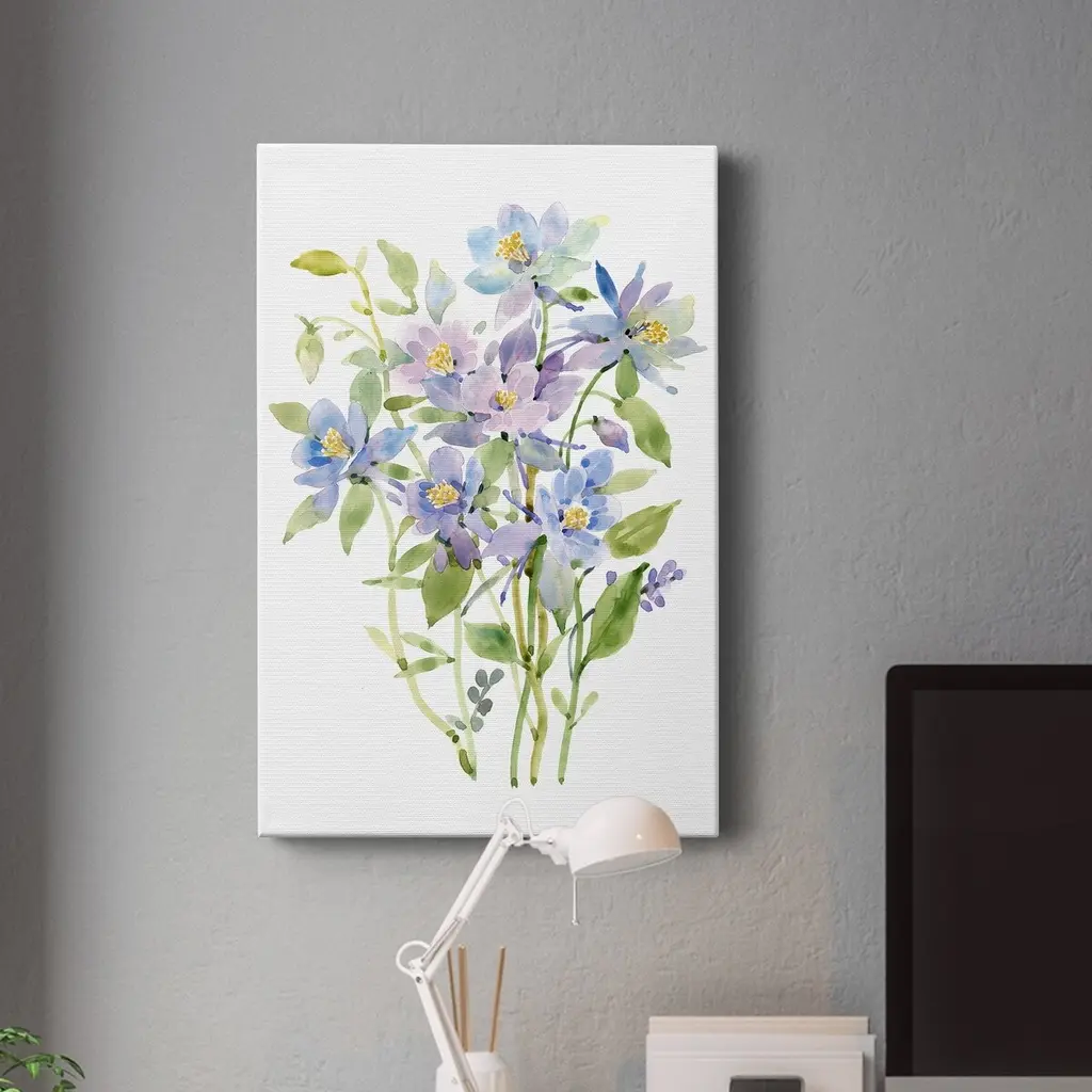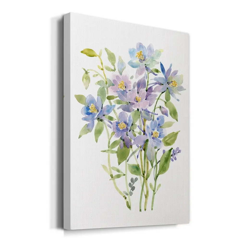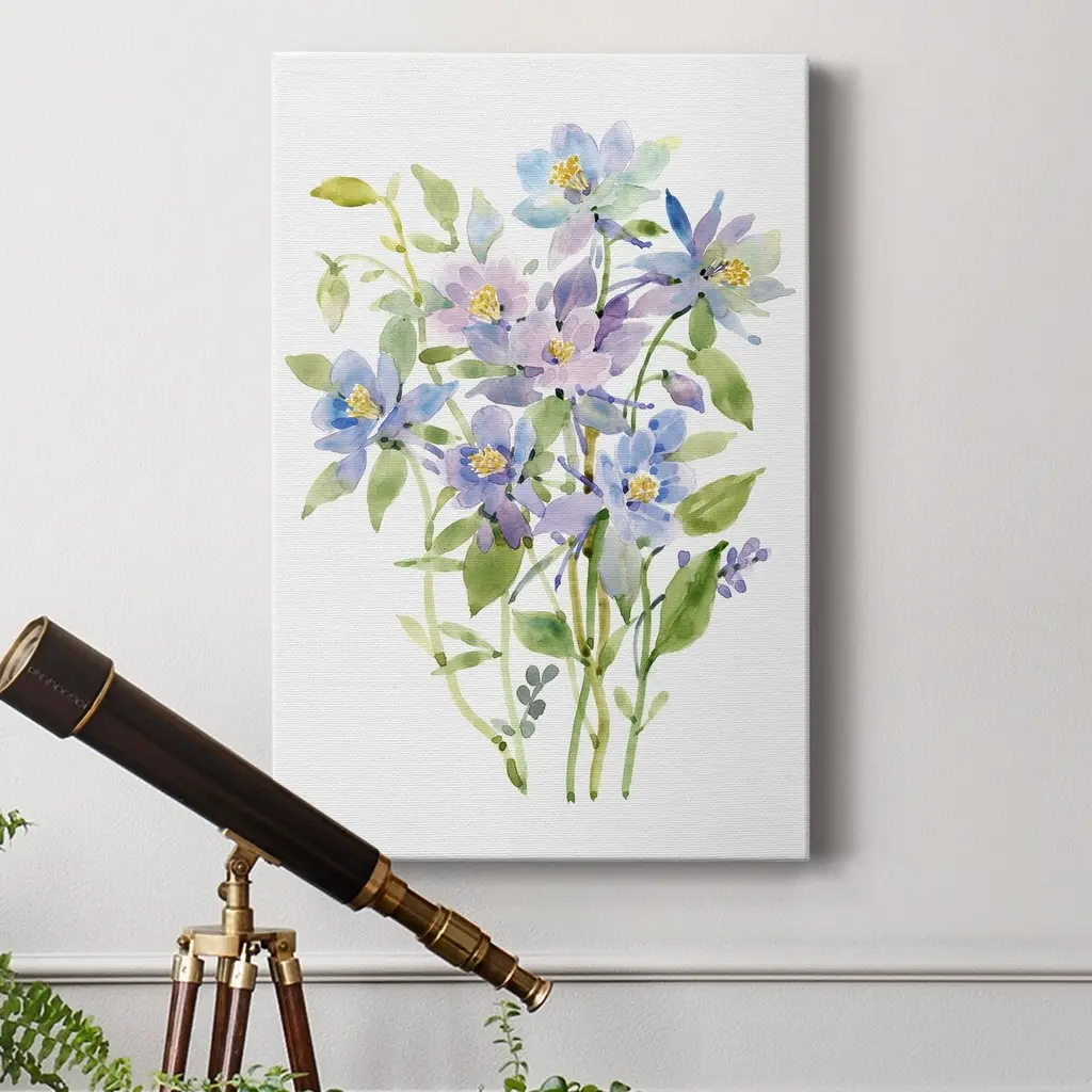 Columbine Spray II Premium Gallery Wrapped Canvas - Ready to Hang A premium hand stretched gallery wrapped canvas print created to last. Featuring a beveled a solid wood stretcher bar, each piece comes ready to hand 6 SIZES AVAILABLE 8''X12'' - Overall Size 12''X18'' - Overall Size 18''X27'' - Overall Size 24''x36'' - Overall Size 32''x48'' - Overall Size 40''x60'' - Overall Size Each piece is made to order. Built to Last Each piece comes ready to hang Solid wood stretcher Fade and Water resistant Made domestically