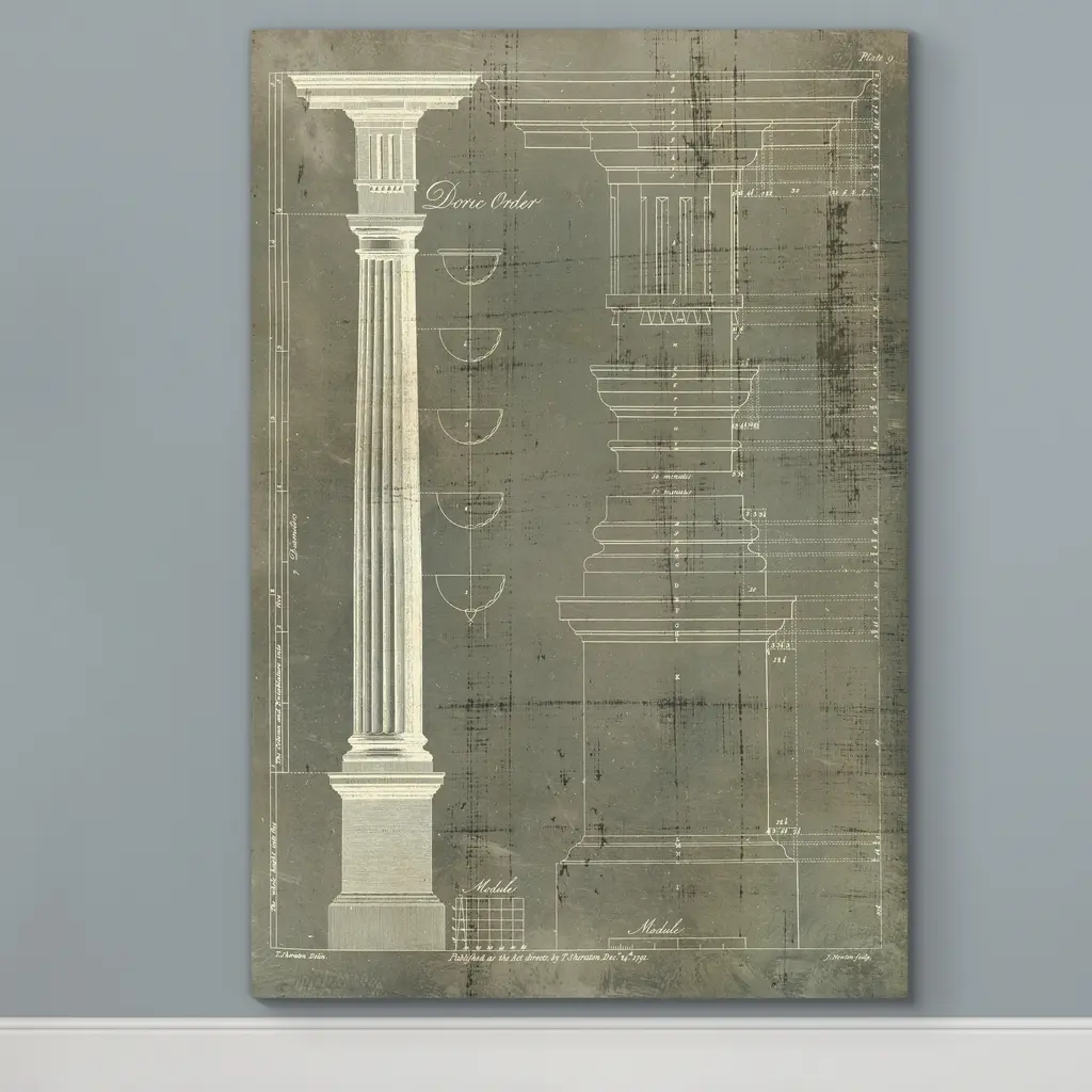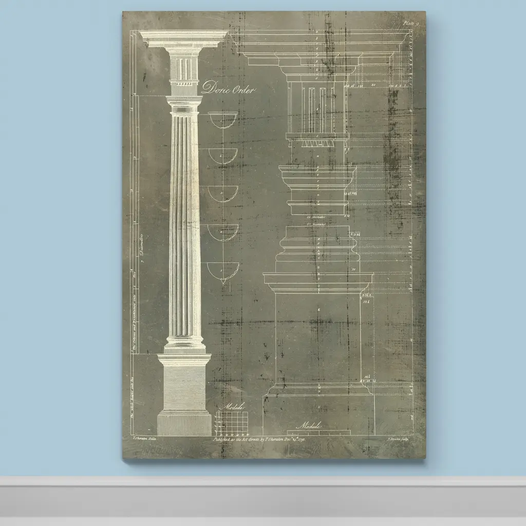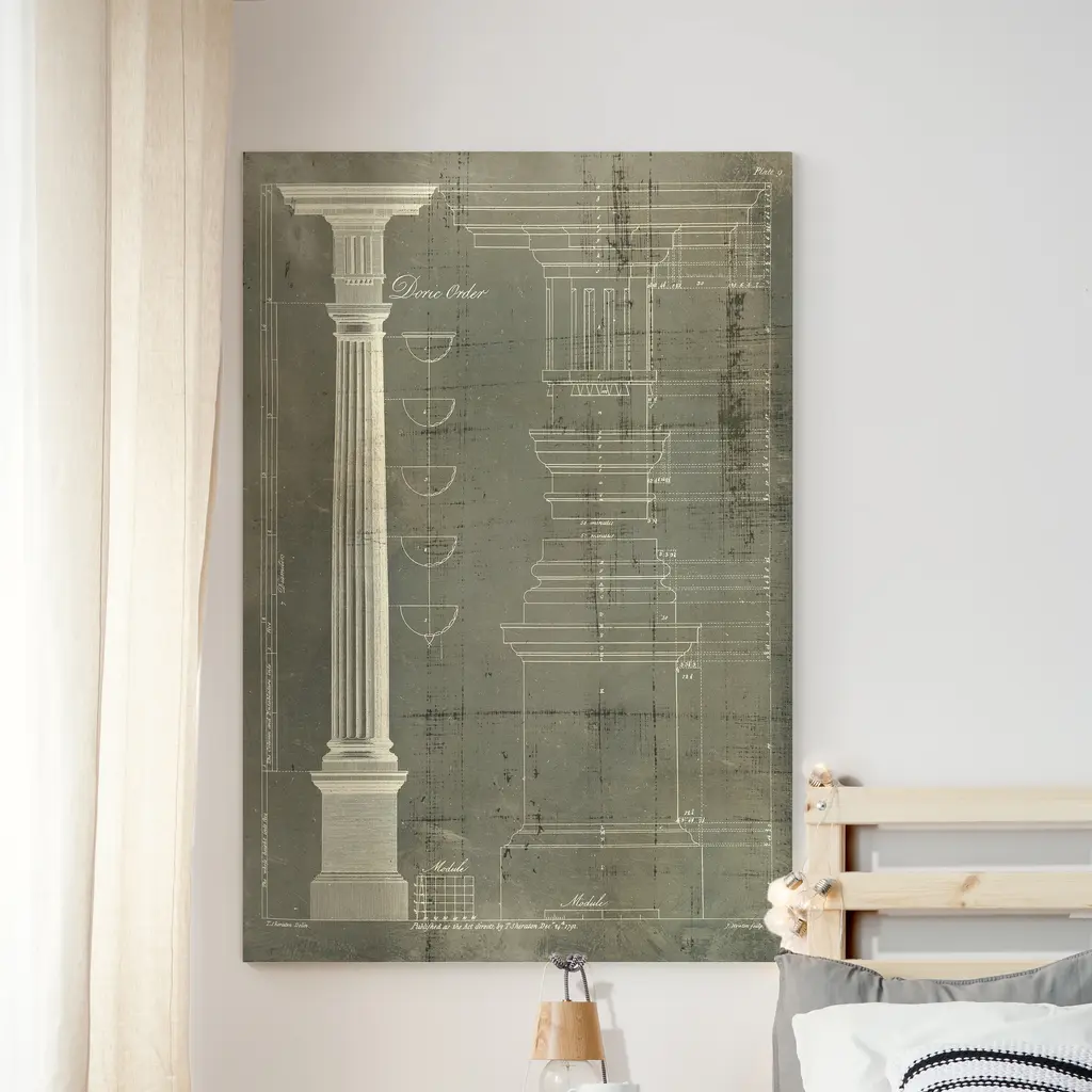 Column Blueprint IV -Premium Gallery Wrapped Canvas - Ready to Hang A premium hand stretched gallery wrapped canvas print created to last. Featuring a beveled a solid wood stretcher bar, each piece comes ready to hand 5 SIZES AVAILABLE 8''X12'' - Overall Size 16''x20'' - Overall Size 18''x27'' - Overall Size 24''x36'' - Overall Size 32''x48'' - Overall Size Each piece is made to order. Built to Last Each piece comes ready to hang Solid wood stretcher Fade and Water resistant Made domestically