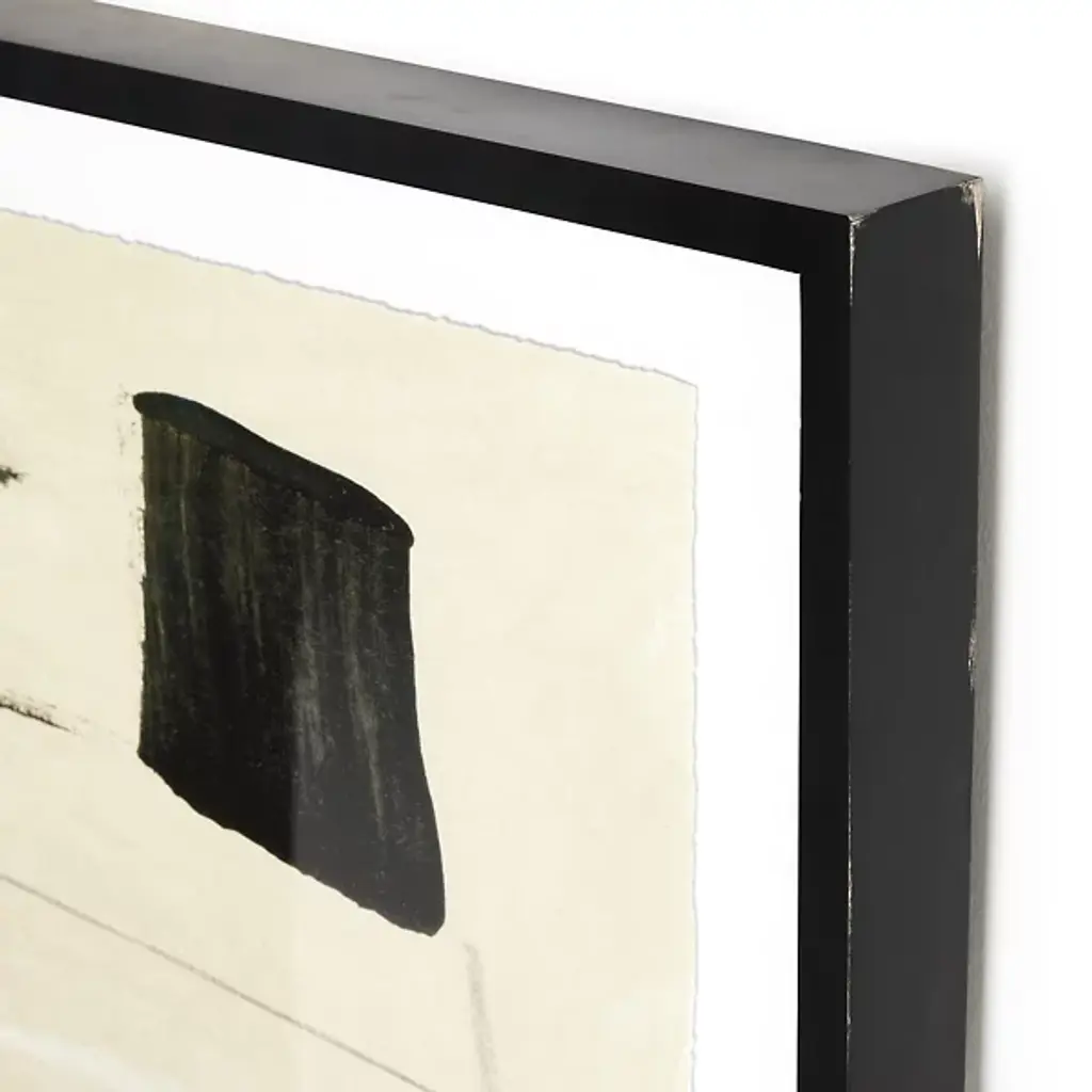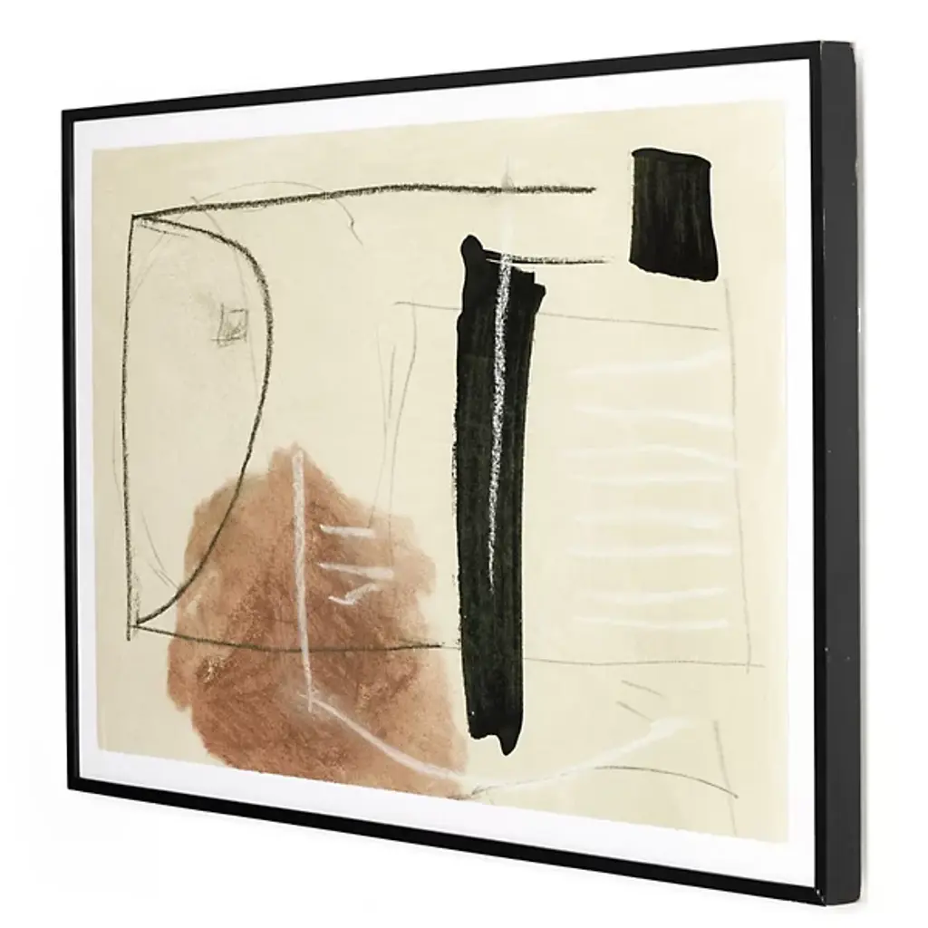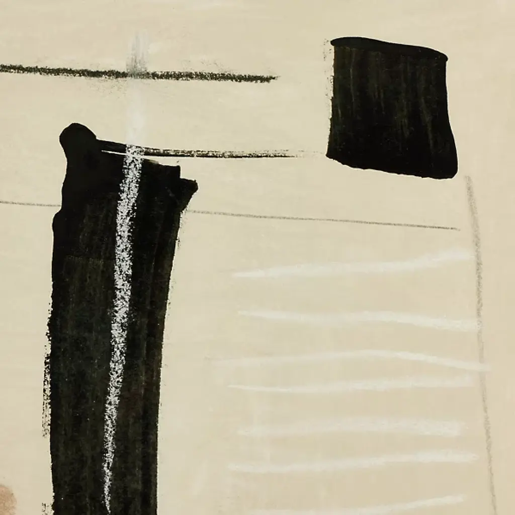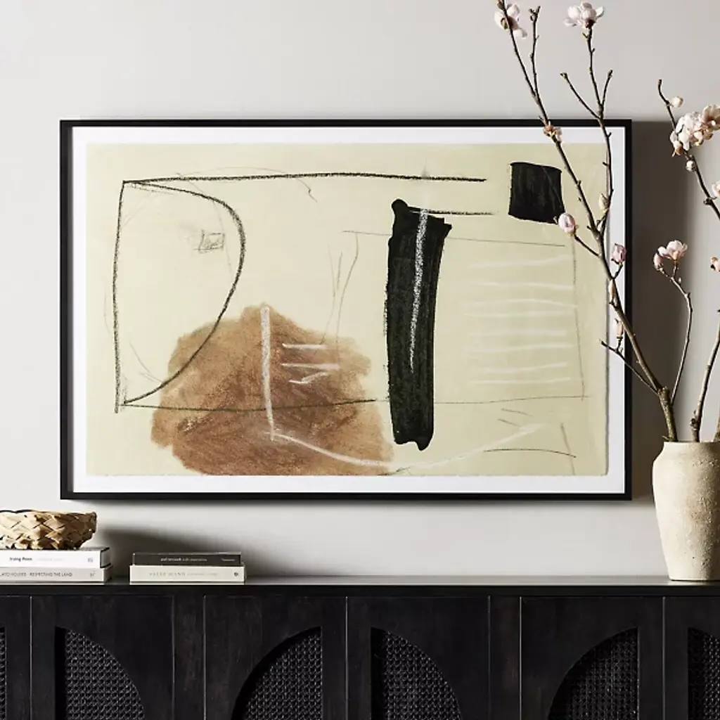 The Combine Wall Art from Four Hands blends watercolor, charcoal, and ink in an intuitive composition inspired by coastal landscapes. Artist Dan Hobday translates the open spaces of Devon, England, into abstract marks that move across the textured fine art paper. The horizontal artwork pairs precise linework with fluid forms mounted within an American maple frame. Each piece is handcrafted in Austin, Texas, reflecting Hobday's signature approach of mixing traditional and experimental techniques.