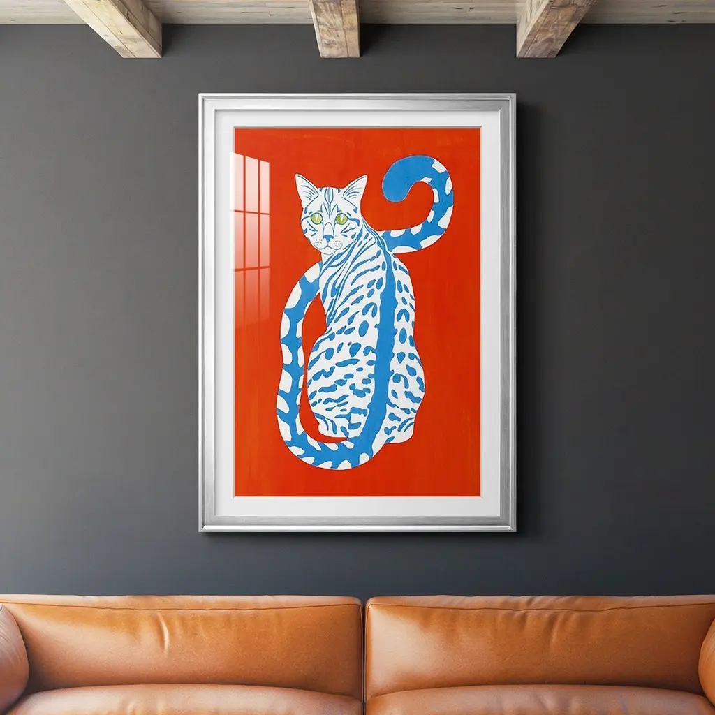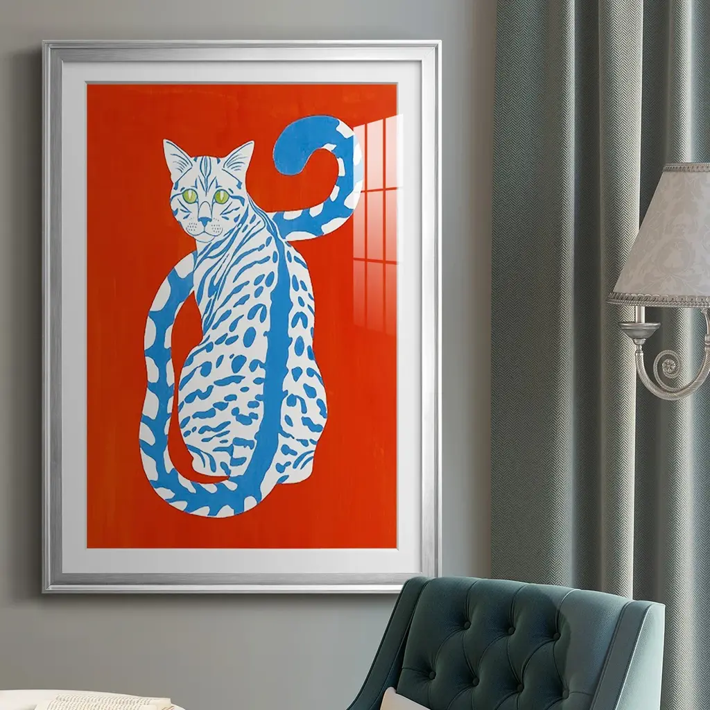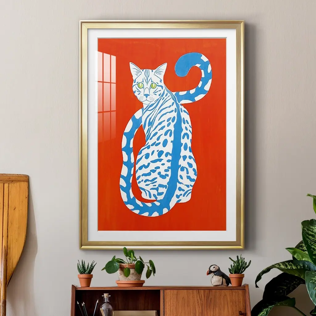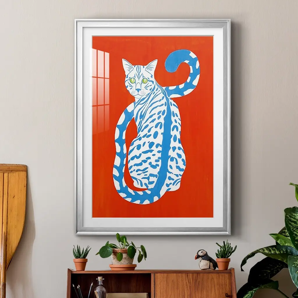 Complementary House Cat II Premium Framed Print - Ready to Hang A Premium Framed Print created to last. Framed in distressed wood and available in an array of sizes and colors Featuring a beveled a solid wood stretcher bar, each piece comes ready to hand 4 SIZES AVAILABLE 30.5''X42.5'' - Overall Size 26.5'X36.5'' - Overall Size 22.5''x30.5'' - Overall Size 18.5''x24.5'' - Overall Size Each piece is made to order. Each piece comes with hanging hardware. Made in the USA Ready to Hang Giclee Paper Print Acrylic Glass Beveled Matt Board
