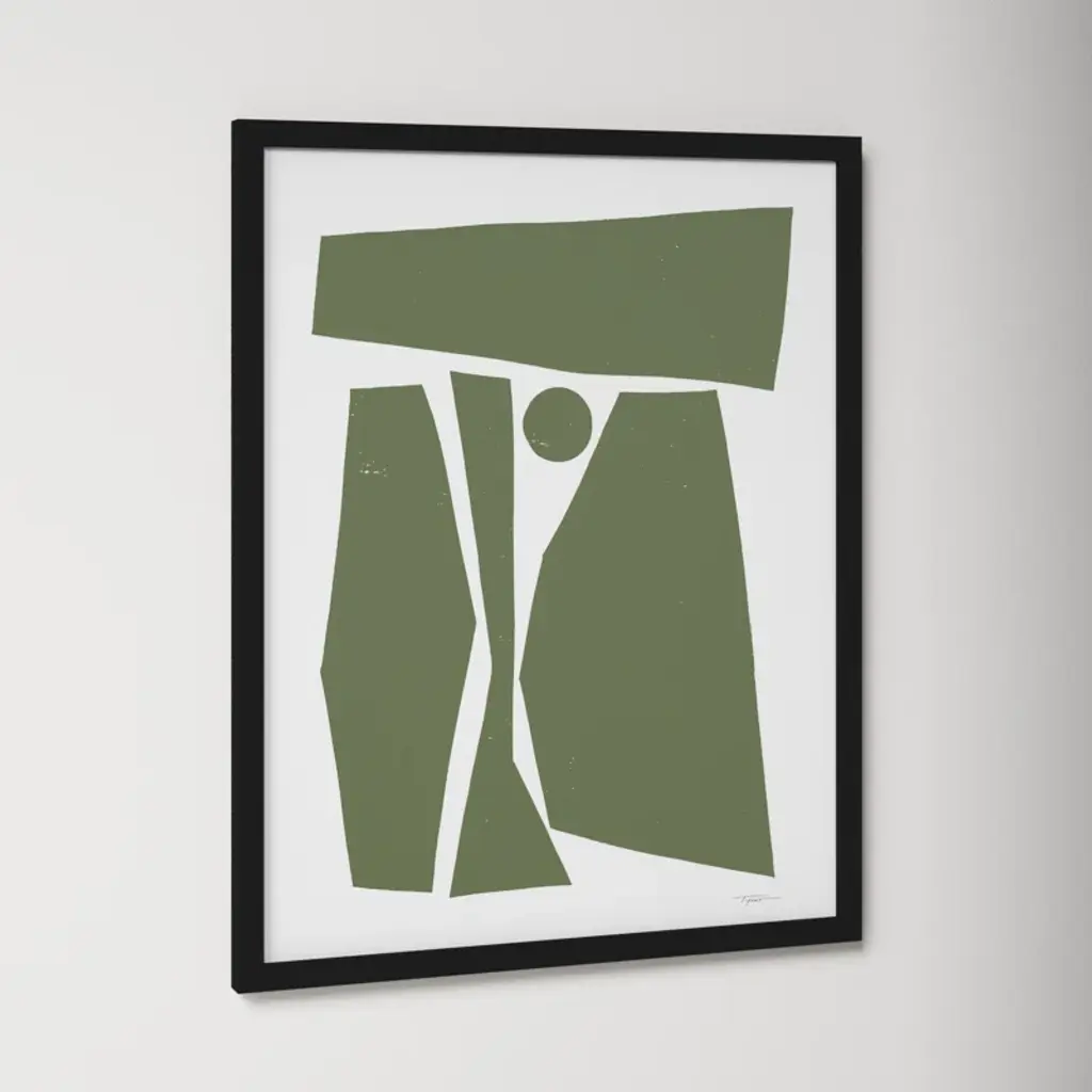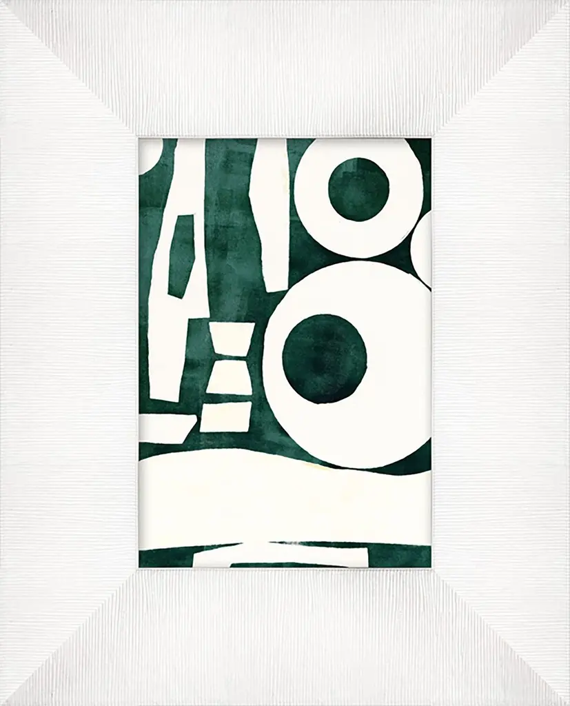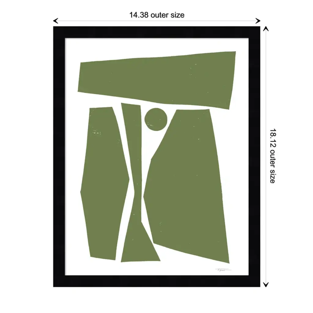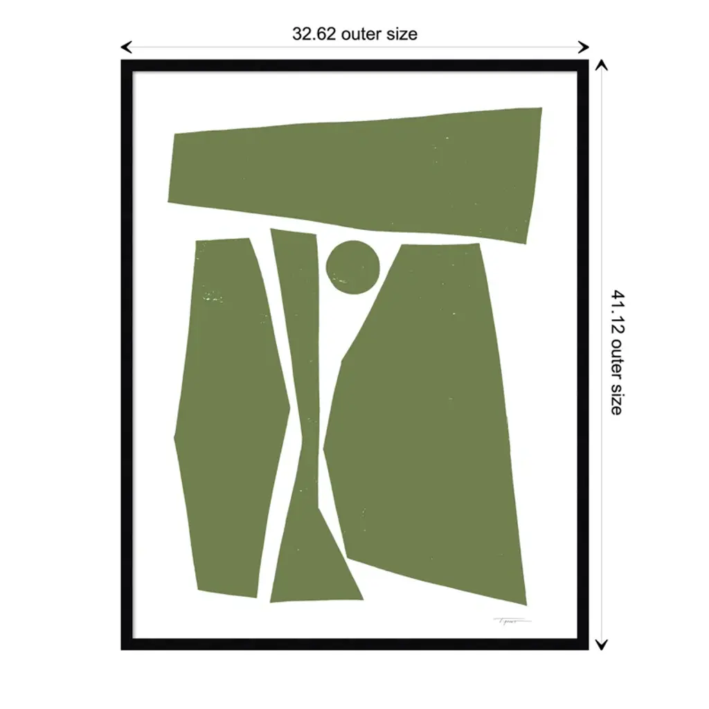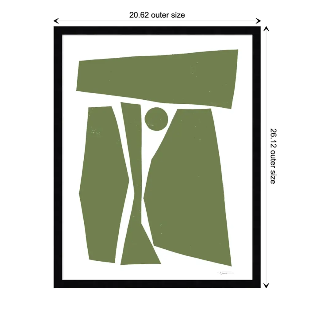An instant refresh for your walls. This abstract block print draws on the forms and compositions from mid-century artists, creating a statement look wherever it hangs. Printed in the USA, this graphic art piece features abstract shapes in a deep green tone on a white background for a look with understated dynamism. And since it's giclee printed on fine art paper, it's both an accurate reproduction and resists fading. It arrives framed with wall mounting hardware.