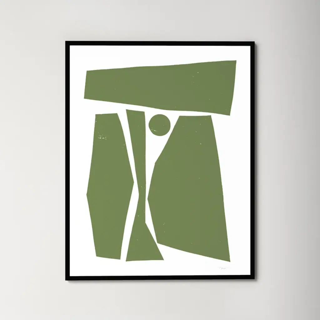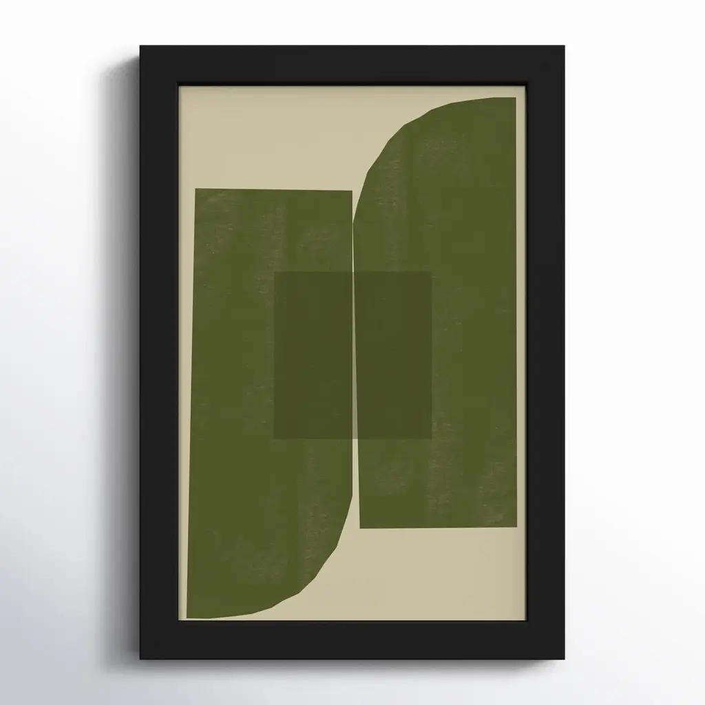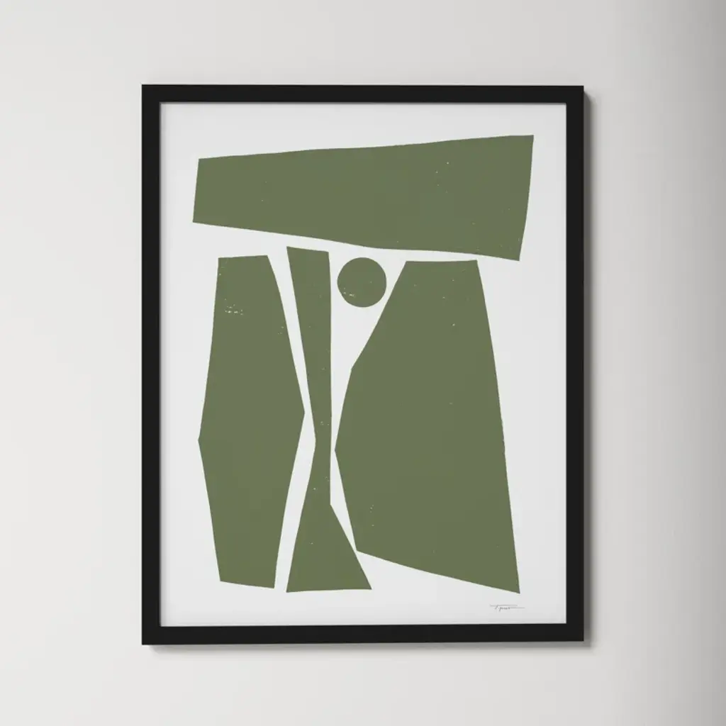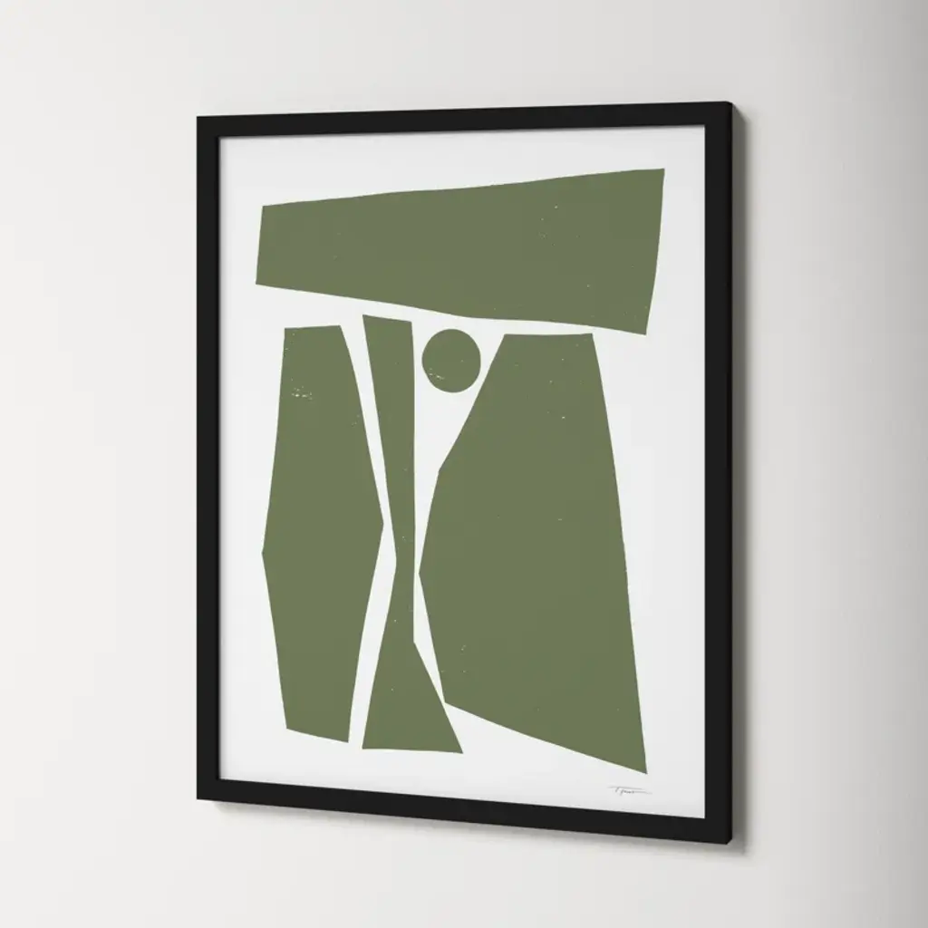 An instant refresh for your walls. This abstract block print draws on the forms and compositions from mid-century artists, creating a statement look wherever it hangs. Printed in the USA, this graphic art piece features abstract shapes in a deep green tone on a white background for a look with understated dynamism. And since it's giclee printed on fine art paper, it's both an accurate reproduction and resists fading. It arrives framed with wall mounting hardware.