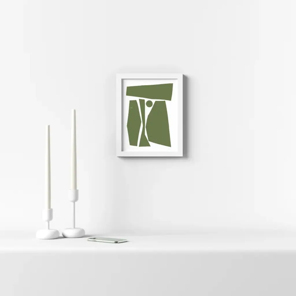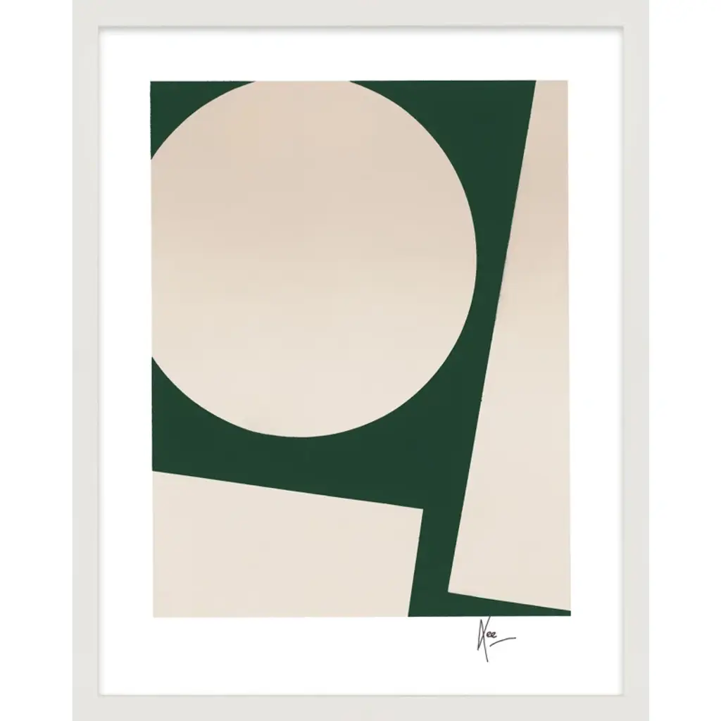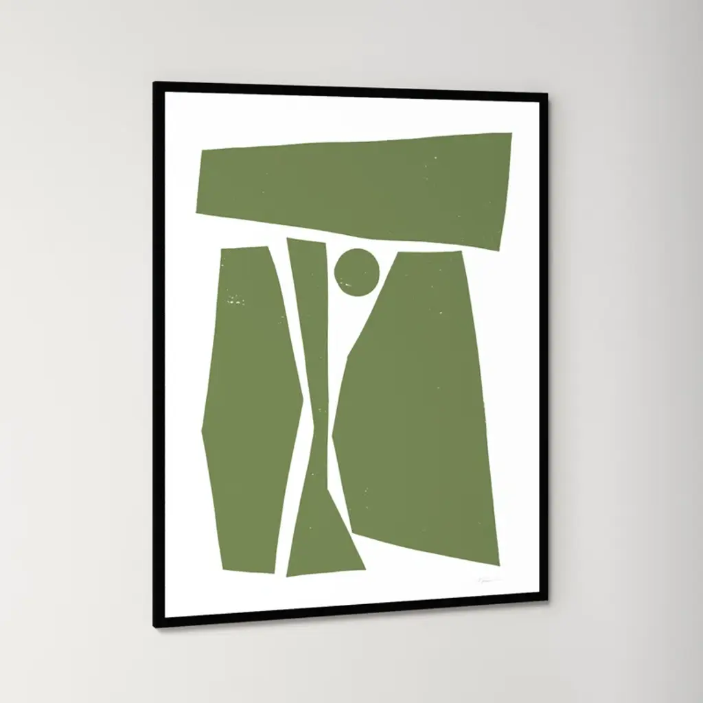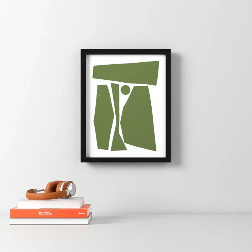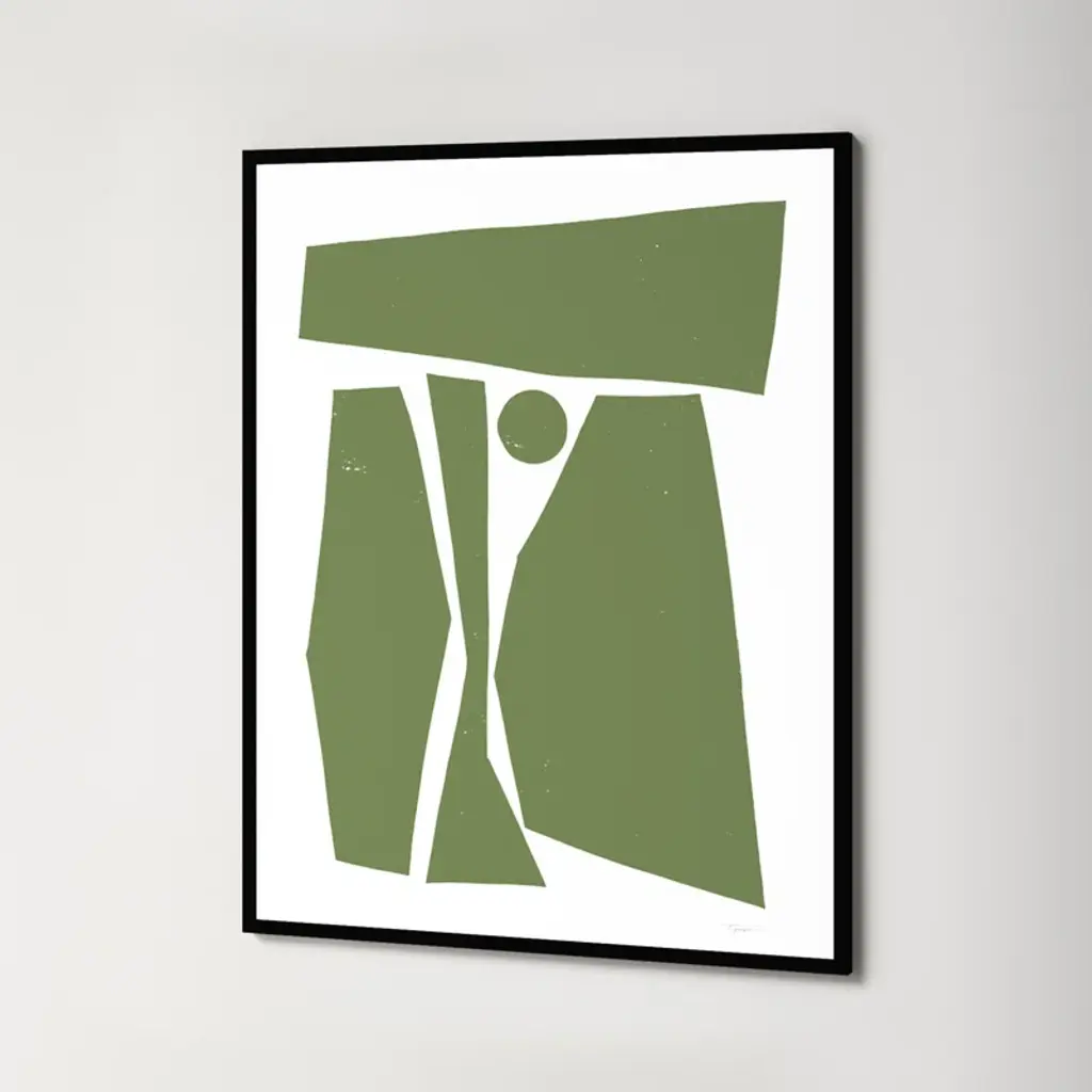 An instant refresh for your walls. This abstract block print draws on the forms and compositions from mid-century artists, creating a statement look wherever it hangs. Printed in the USA, this graphic art piece features abstract shapes in a deep green tone on a white background for a look with understated dynamism. And since it's giclee printed on fine art paper, it's both an accurate reproduction and resists fading. It arrives framed with wall mounting hardware.