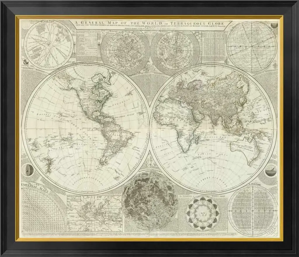 "Composite: World Or Terraqueous Globe, 1787" By Samuel Dunn, 34x30"